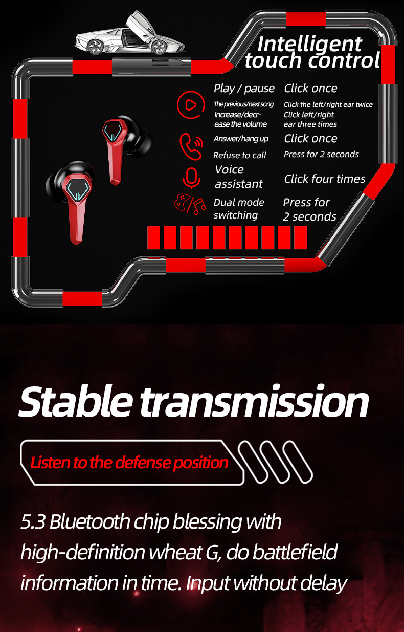 JX10 국경 개인 모델 전자 스포츠 블루투스 헤드셋 게임 비 감각 지연 바이노럴 인 귀 호흡 조명 휴대 전화 유니버설