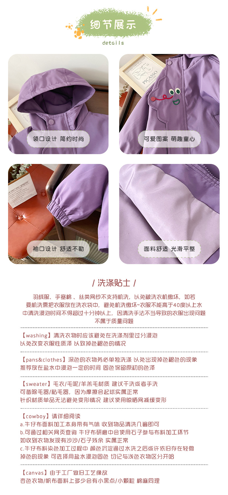QW245108 아동용 재킷 2024 가을 겨울 신상품 보라색 한국 스타일 재킷 남아용 아동 재킷스토어 가기