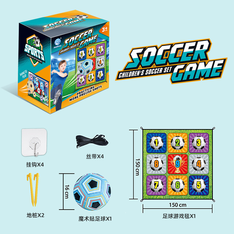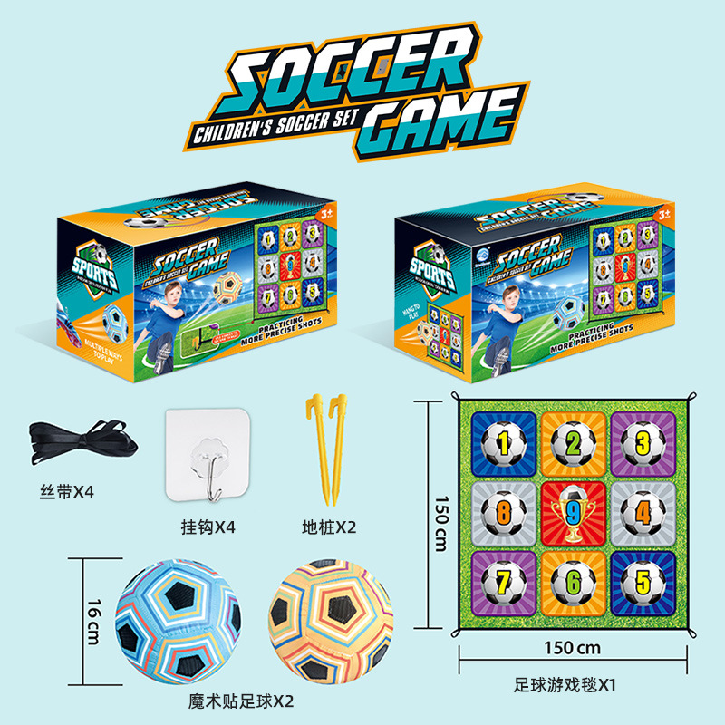 • 7888—16/2 파란색/주황색 축구공 + 접지 스테이크 2개 + 후크 4개 + 리본 4개 + 150CM*150CM 벨벳 타겟 디지털 게임 담요