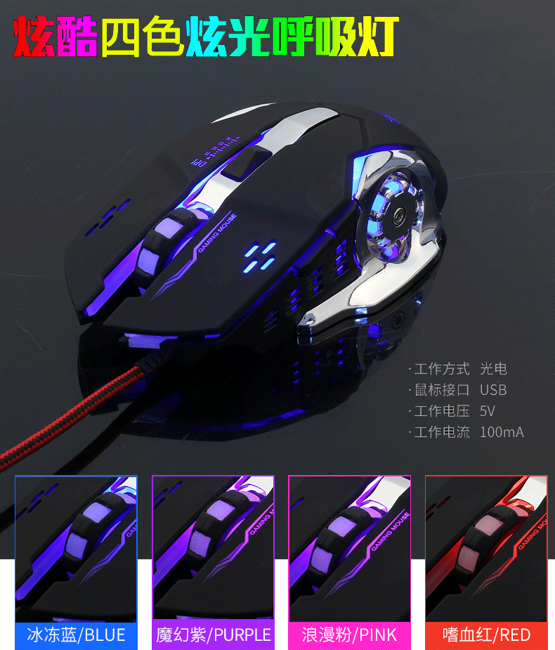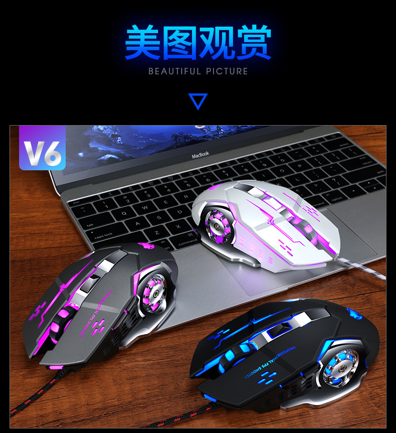 Thunderwolf V6 유선 마우스 기계 게임 컴퓨터 eSports Wrangler 매크로 프로그래밍 LOL 아마존 국경 분포스토어 가기