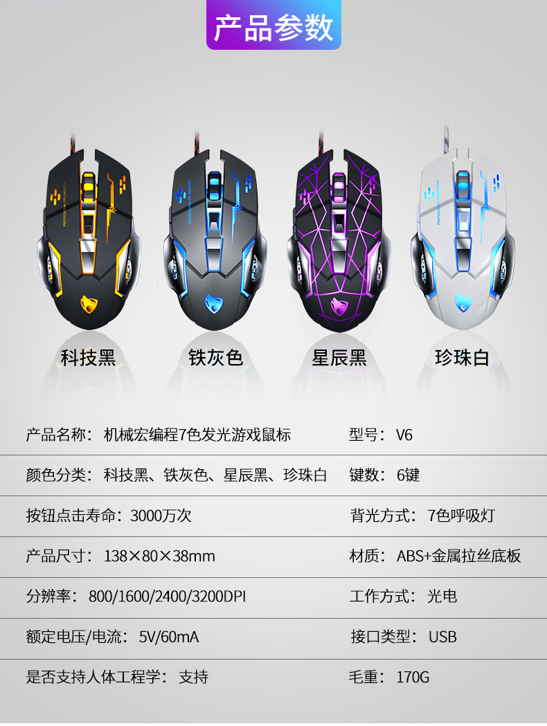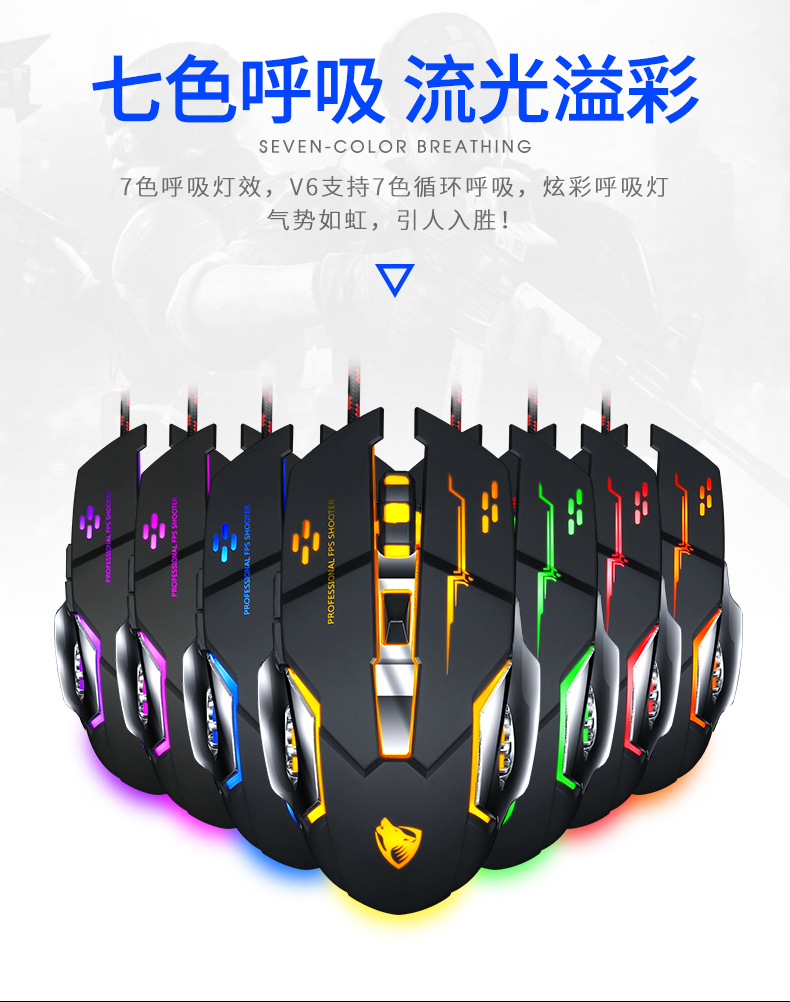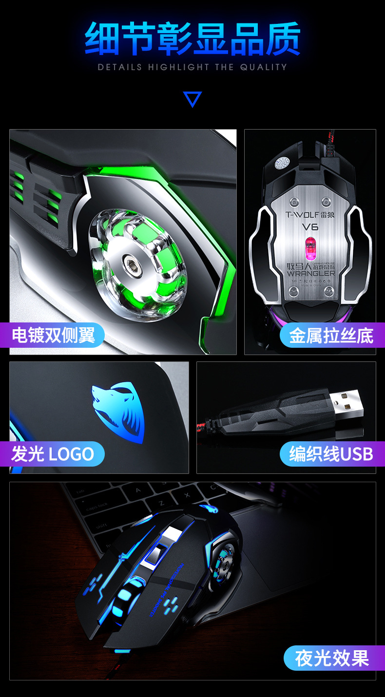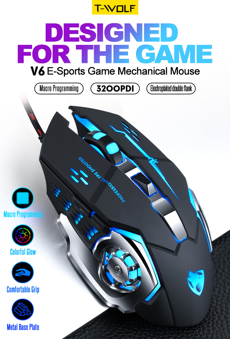 Thunderwolf V6 유선 마우스 기계 게임 컴퓨터 eSports Wrangler 매크로 프로그래밍 LOL 아마존 국경 분포
