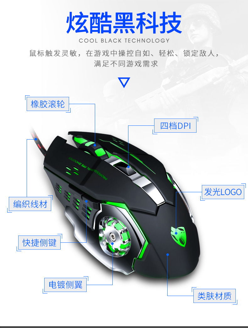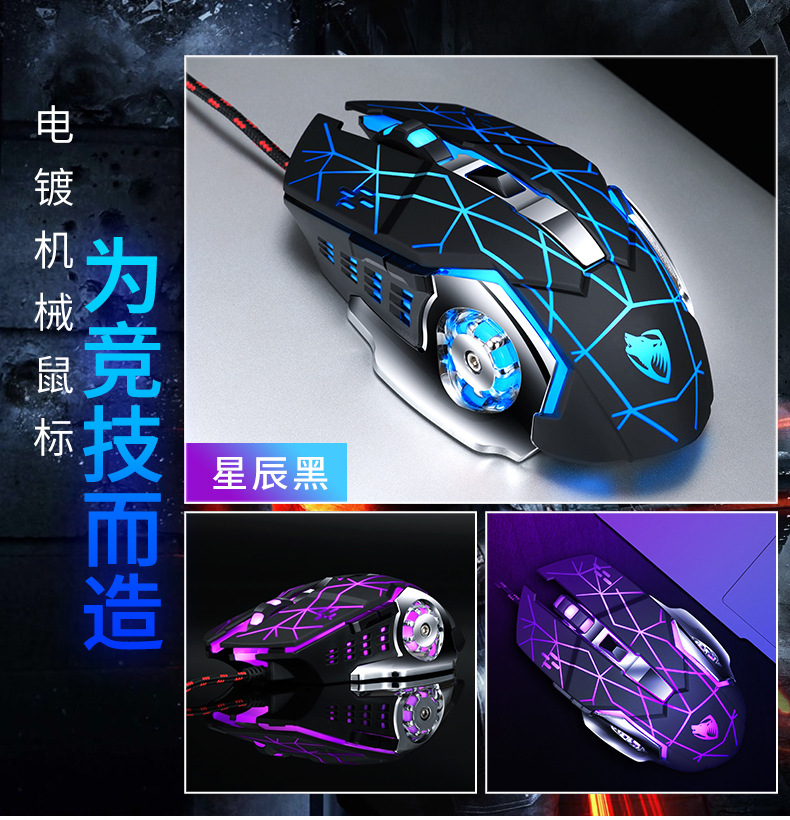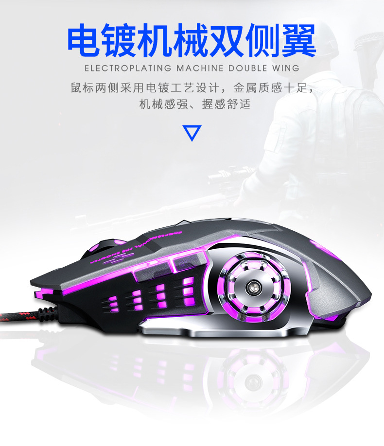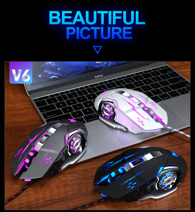 Thunderwolf V6 유선 마우스 기계 게임 컴퓨터 eSports Wrangler 매크로 프로그래밍 LOL 아마존 국경 분포
