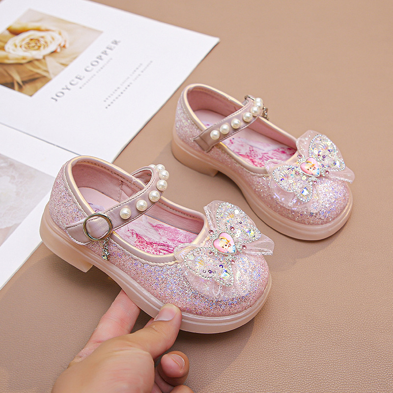소녀 공주 신발 봄과 가을 2024 새로운 패션 소프트 단독 작은 소녀 가죽 신발 라인석 아기 빛나는 크리스탈 신발스토어 가기