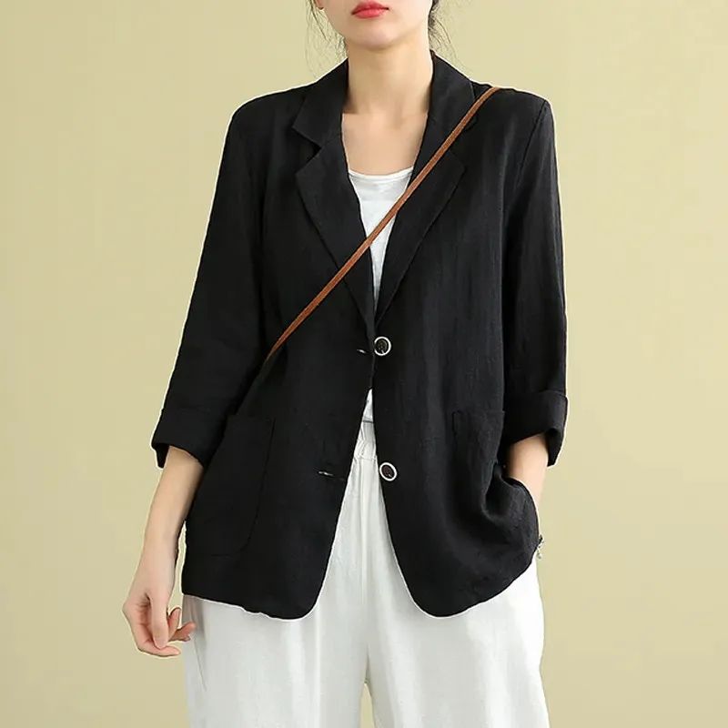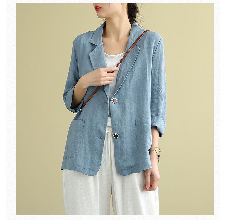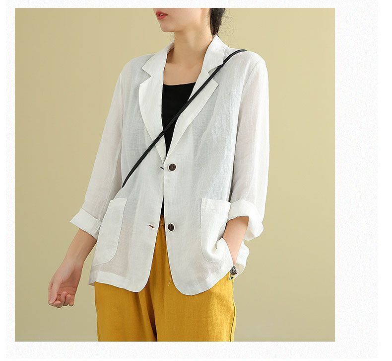 면화와 리넨 캐주얼 긴팔 재킷 작은 세트 2024 봄 및 여름 느슨한 예술적 긴팔 캐주얼 우아한 선 스크린 옷스토어 가기