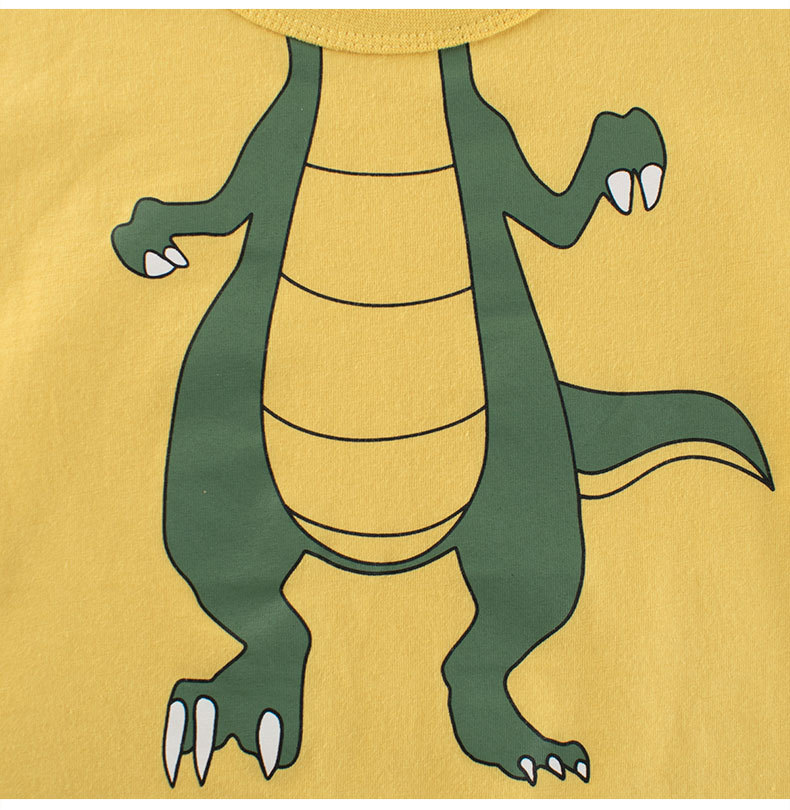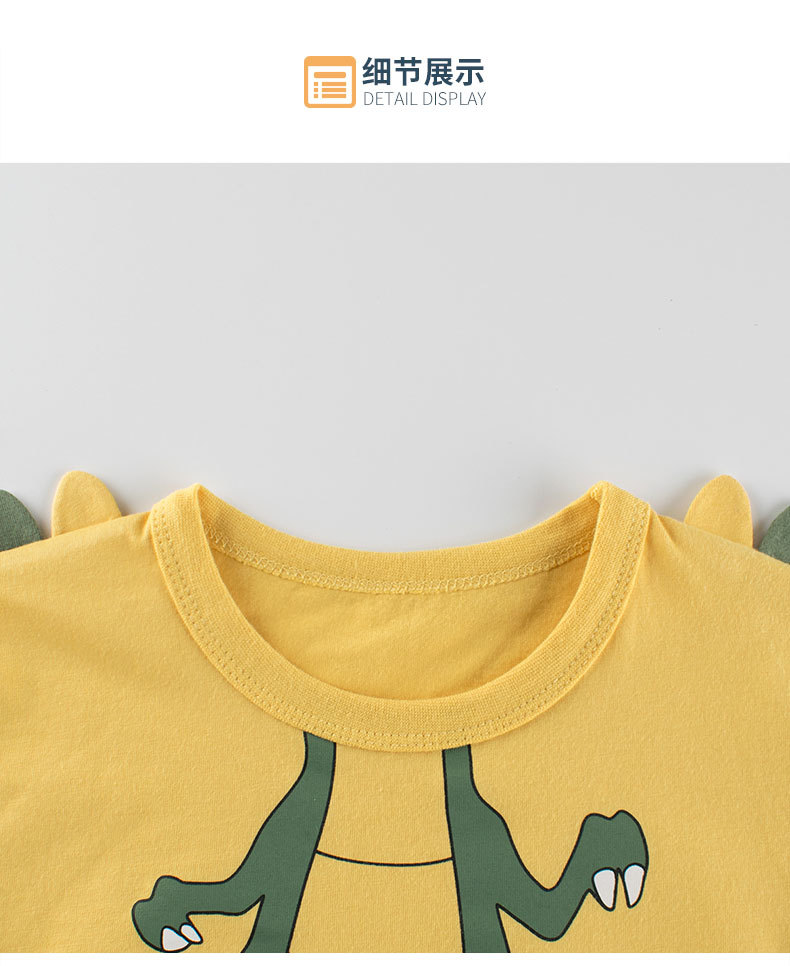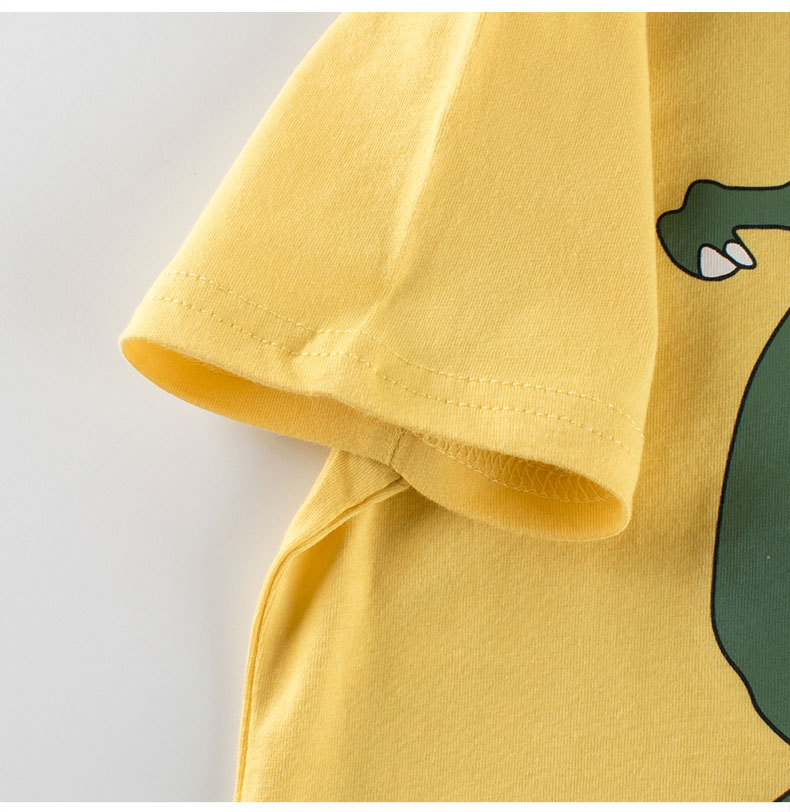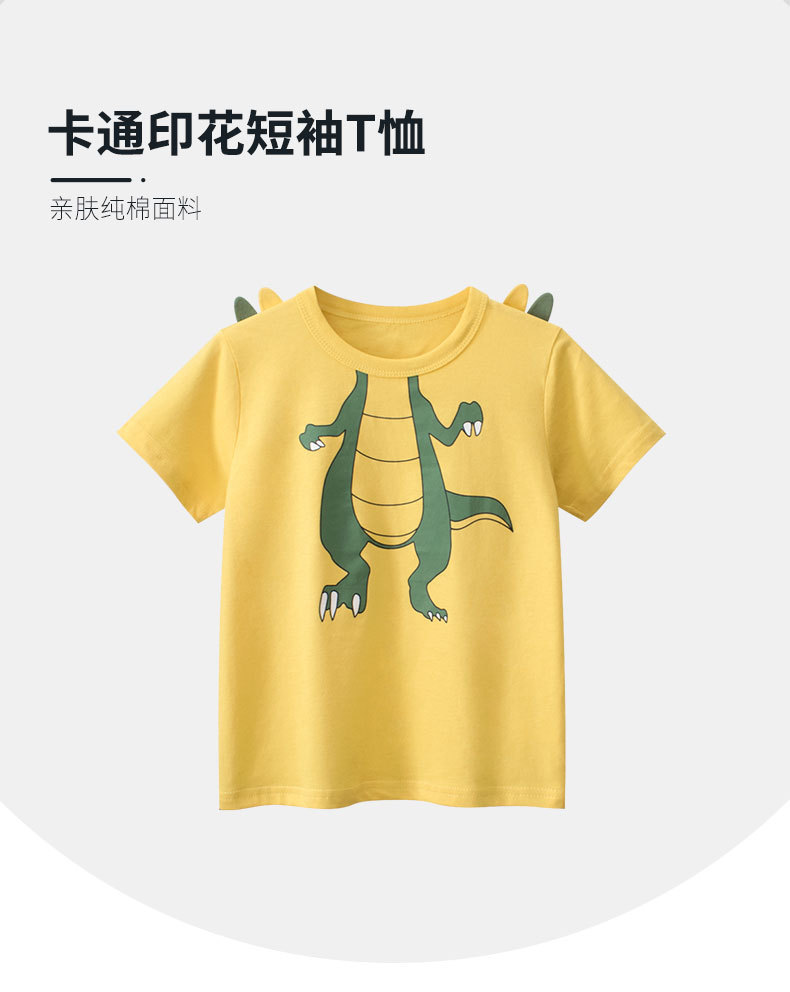 유행 아동복 2024 여름 새로운 어린이 인쇄 반팔 티셔츠 한국 공룡 만화 의류 국경 공급스토어 가기