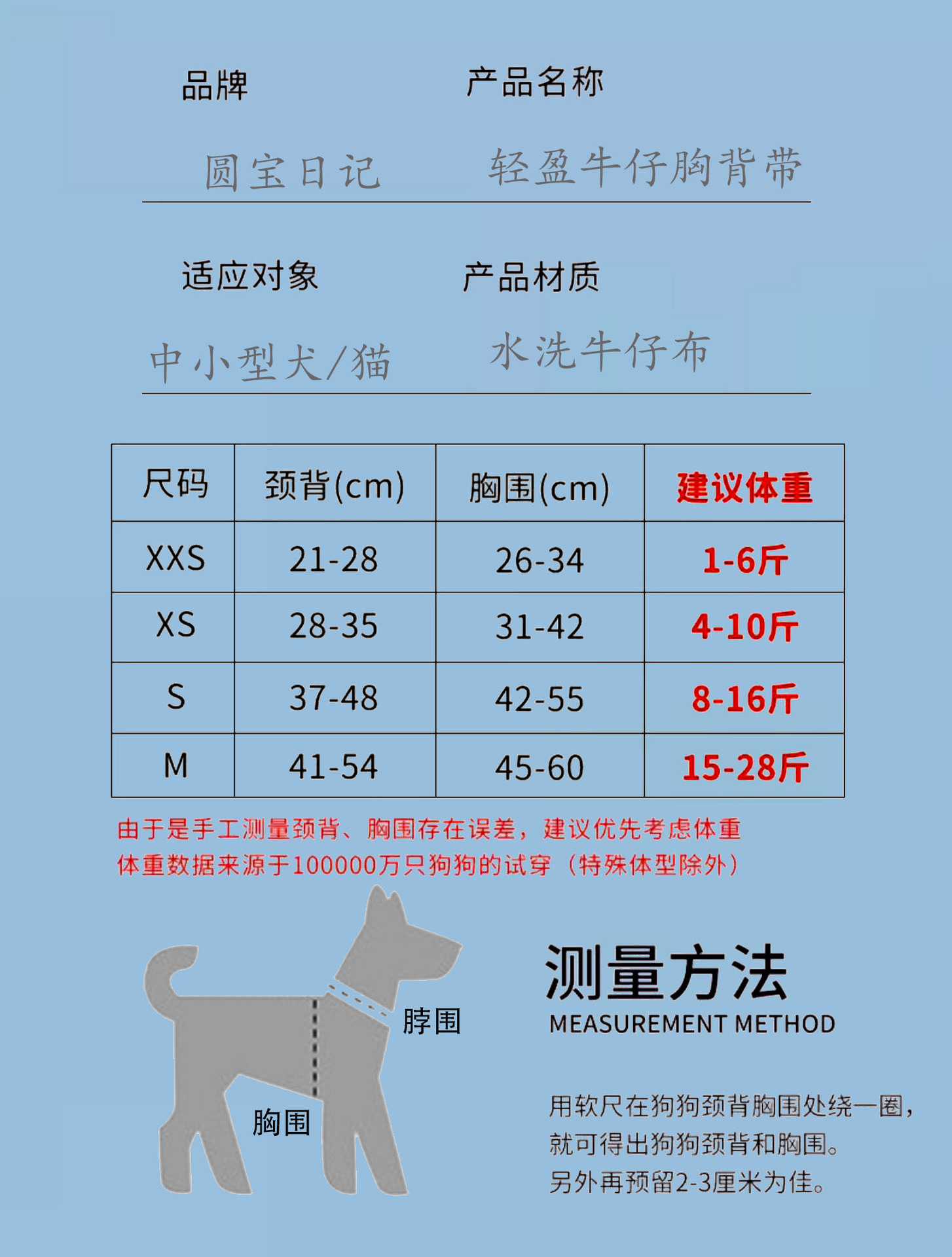 • 초경량 레트로 라이트 블루 데님 하네스(견인 로프 제외)