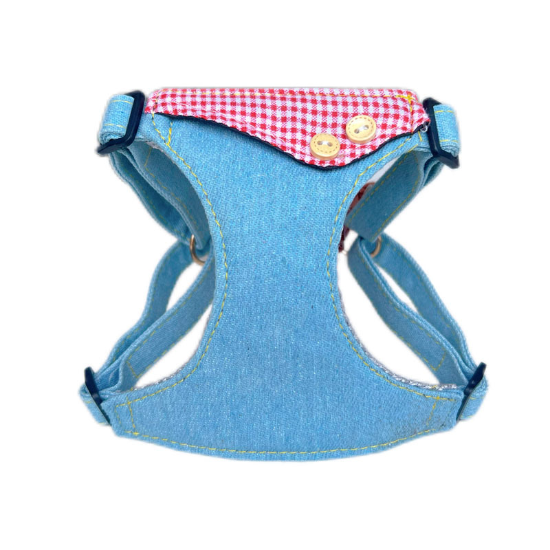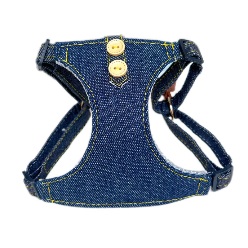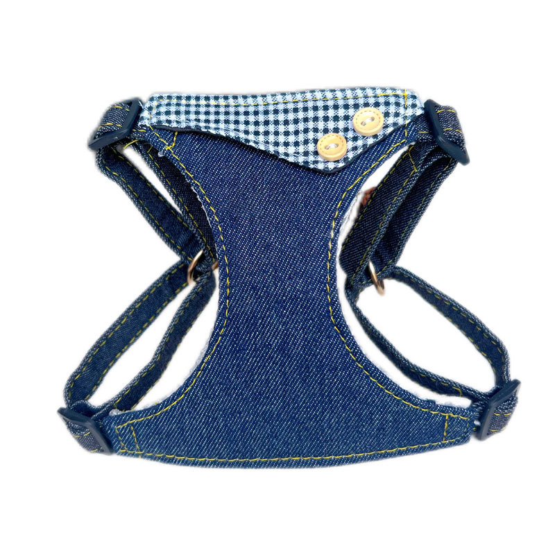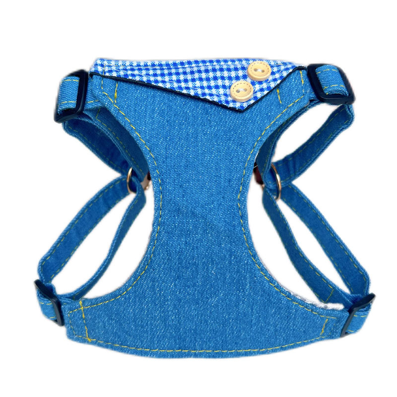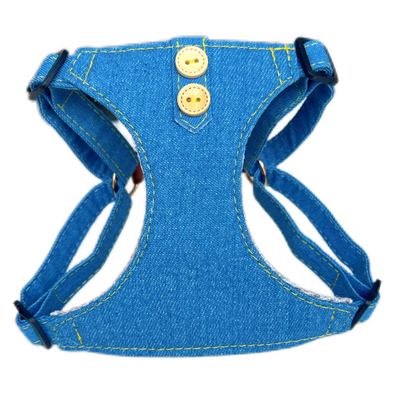 • 더블 버튼 데님 애완동물 하네스 블루(견인 로프 제외)