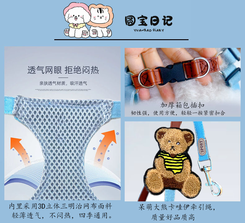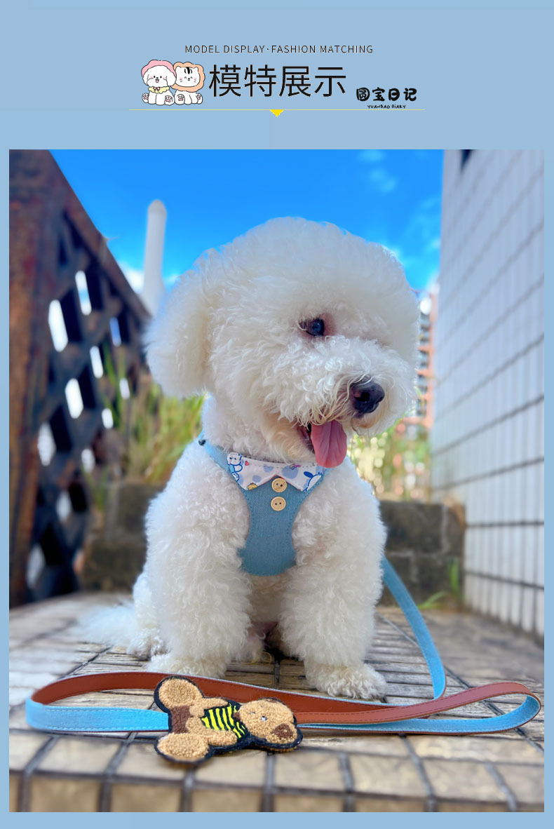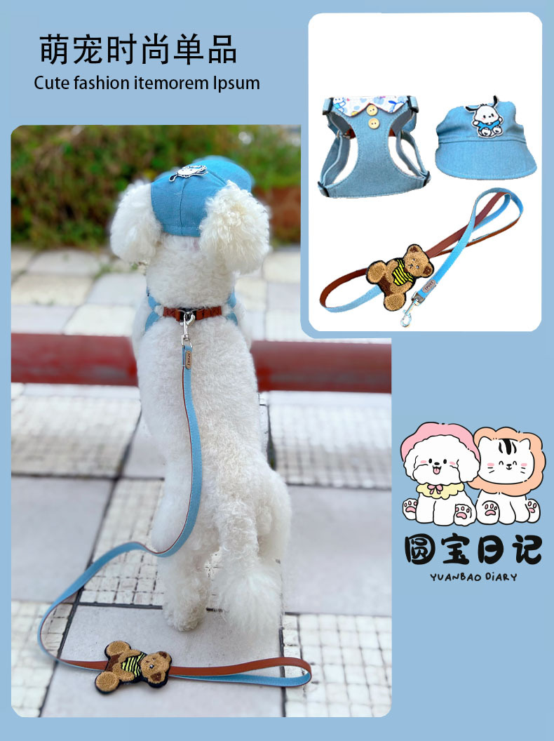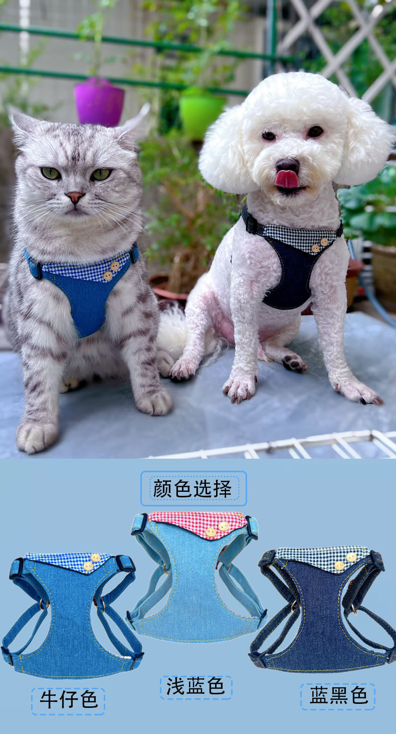 고급 애완 동물 라이트 개 가죽 끈 데님 조끼 개 보행 로프 작은 개 가슴 끈 곰 가슴 등