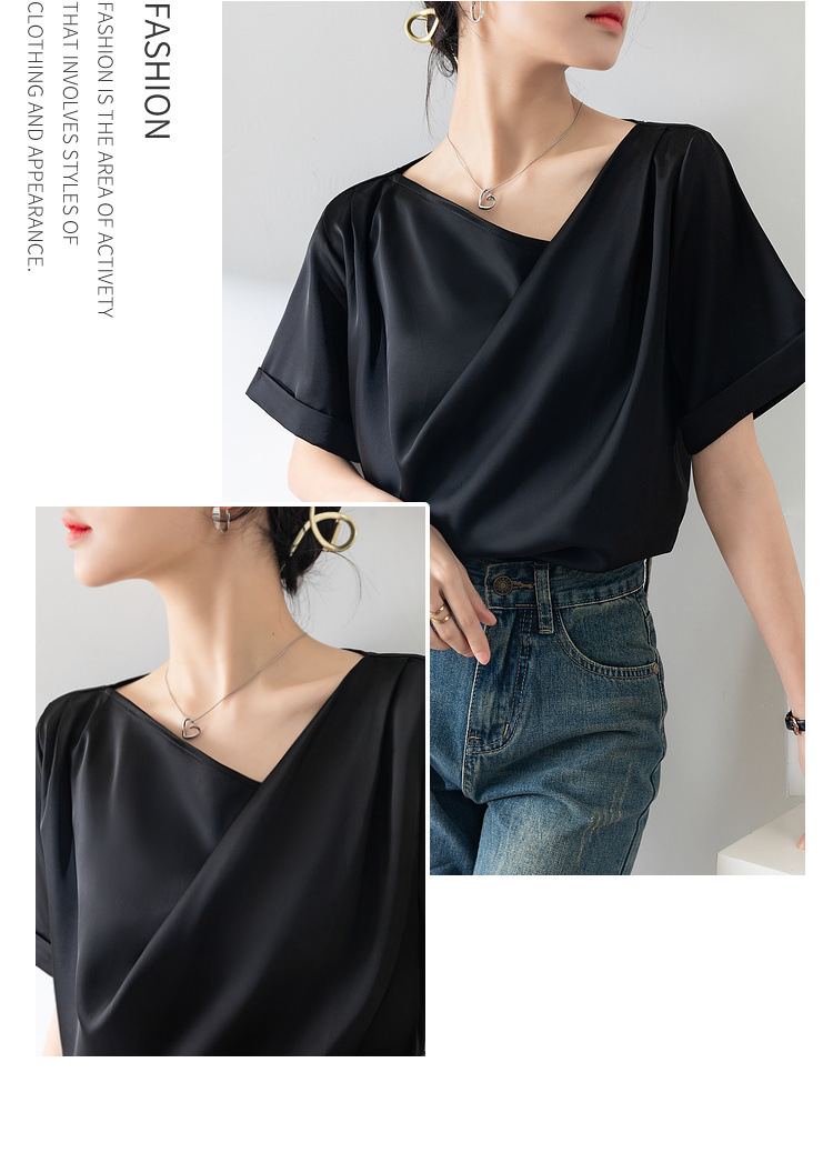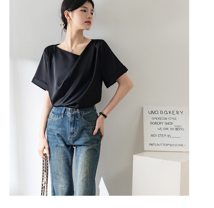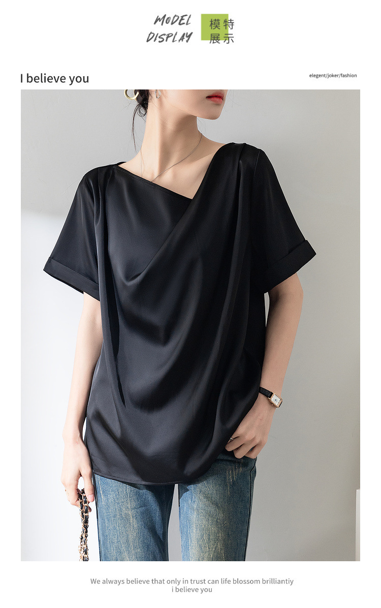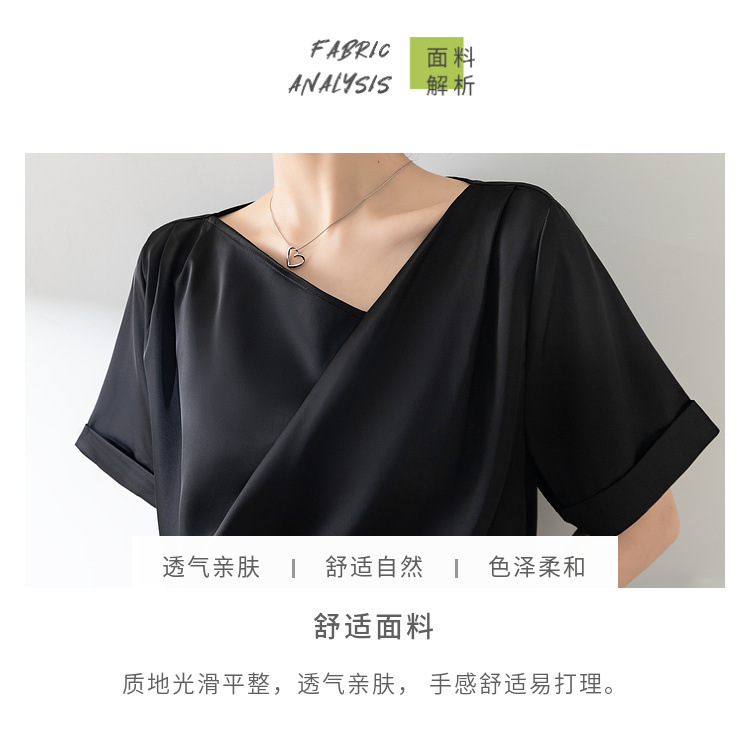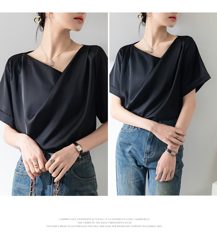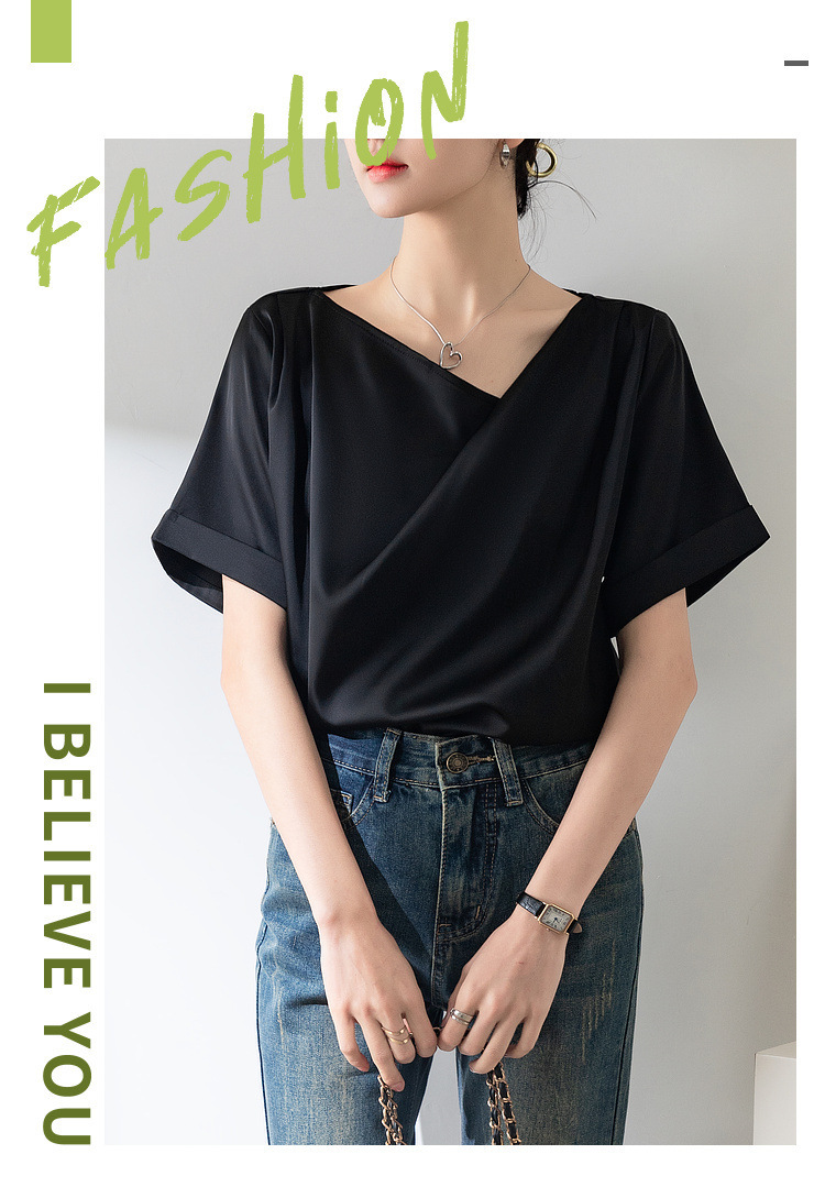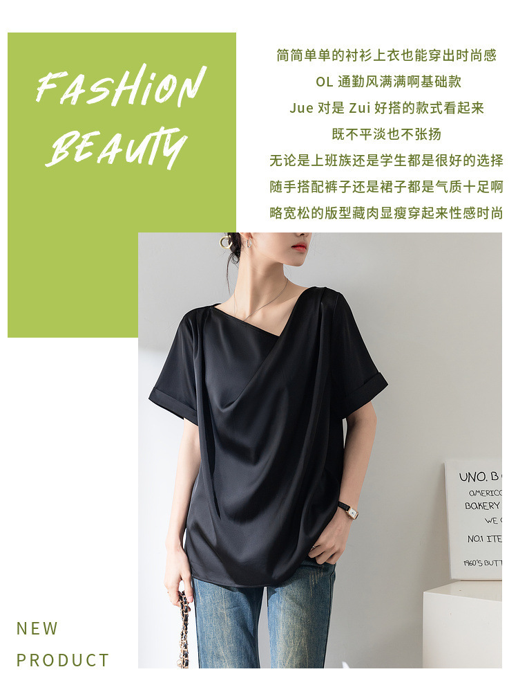 디자인 센스 틈새 새틴 쉬폰 셔츠 여성의 여름 프랑스 느슨한 슬리밍 캐주얼 실크 티셔츠 트렌디 탑스토어 가기