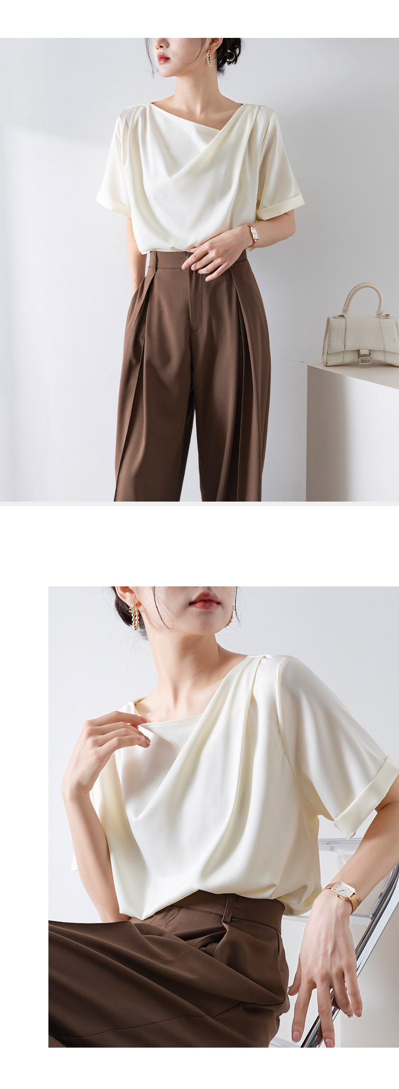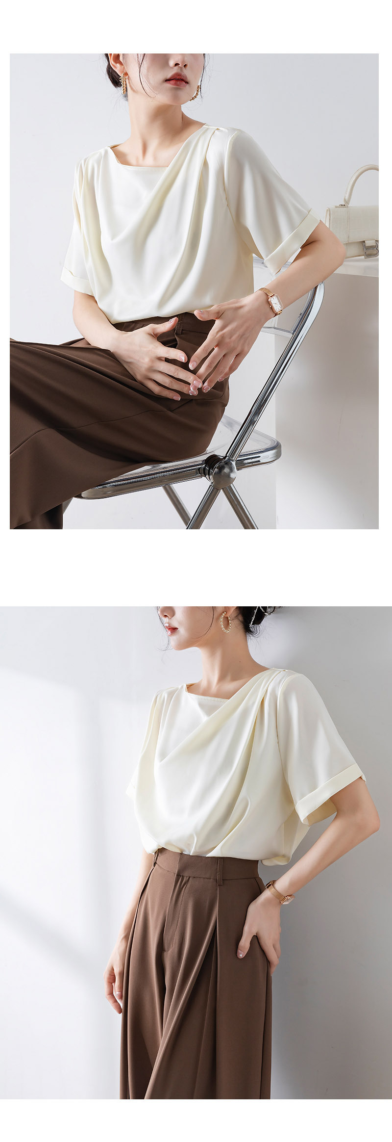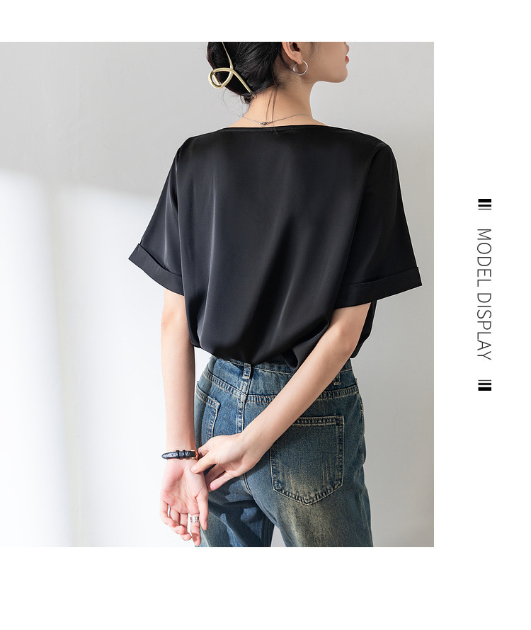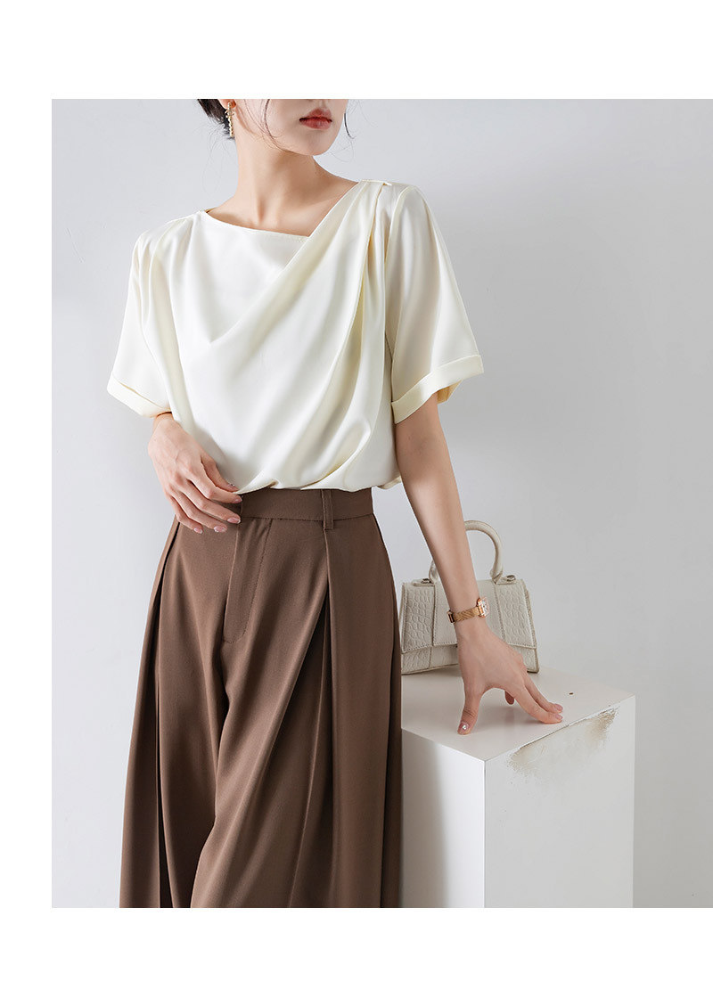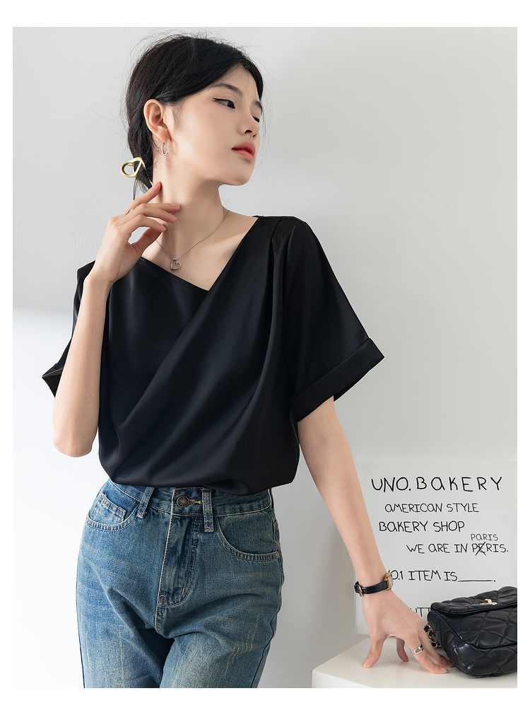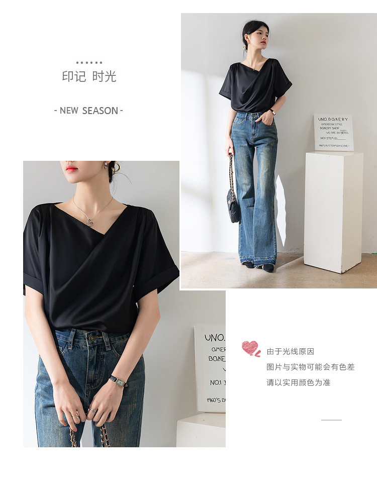 디자인 센스 틈새 새틴 쉬폰 셔츠 여성의 여름 프랑스 느슨한 슬리밍 캐주얼 실크 티셔츠 트렌디 탑스토어 가기