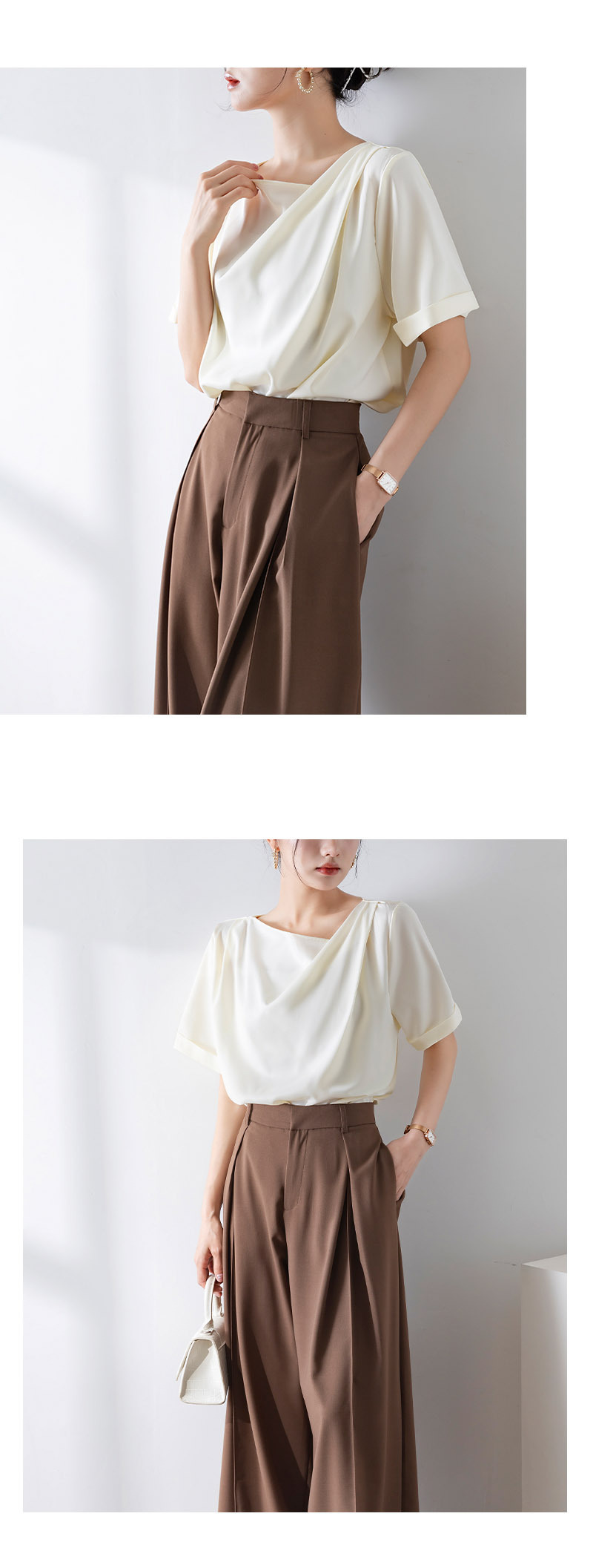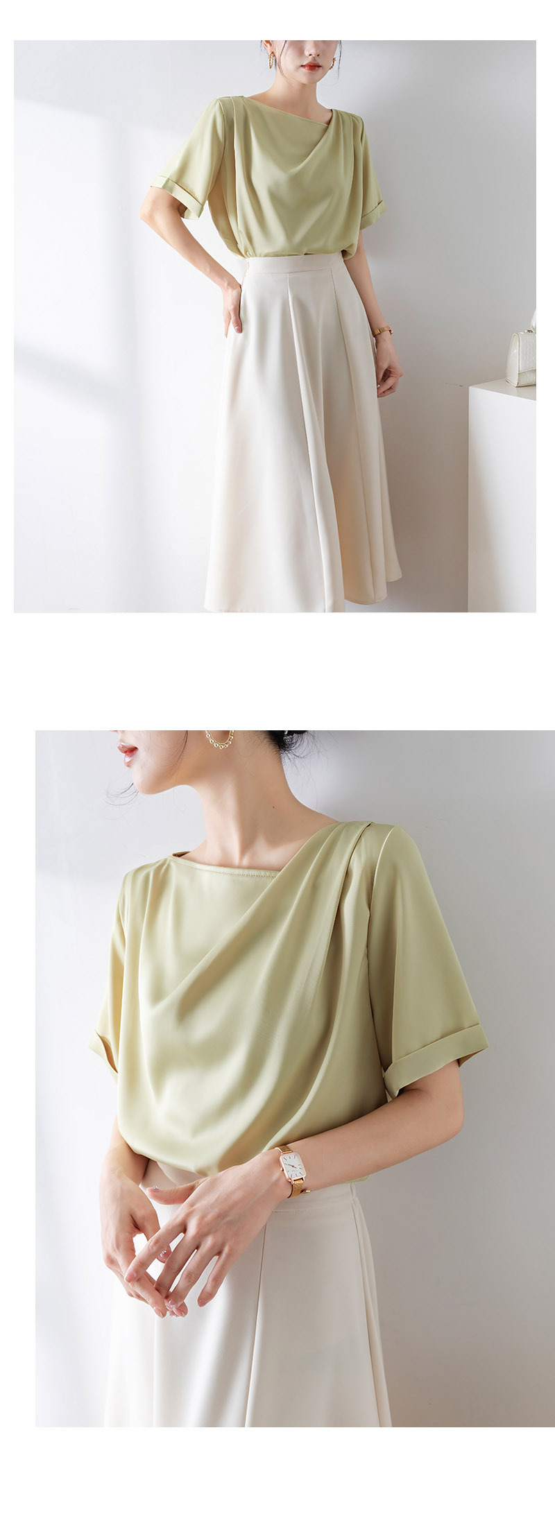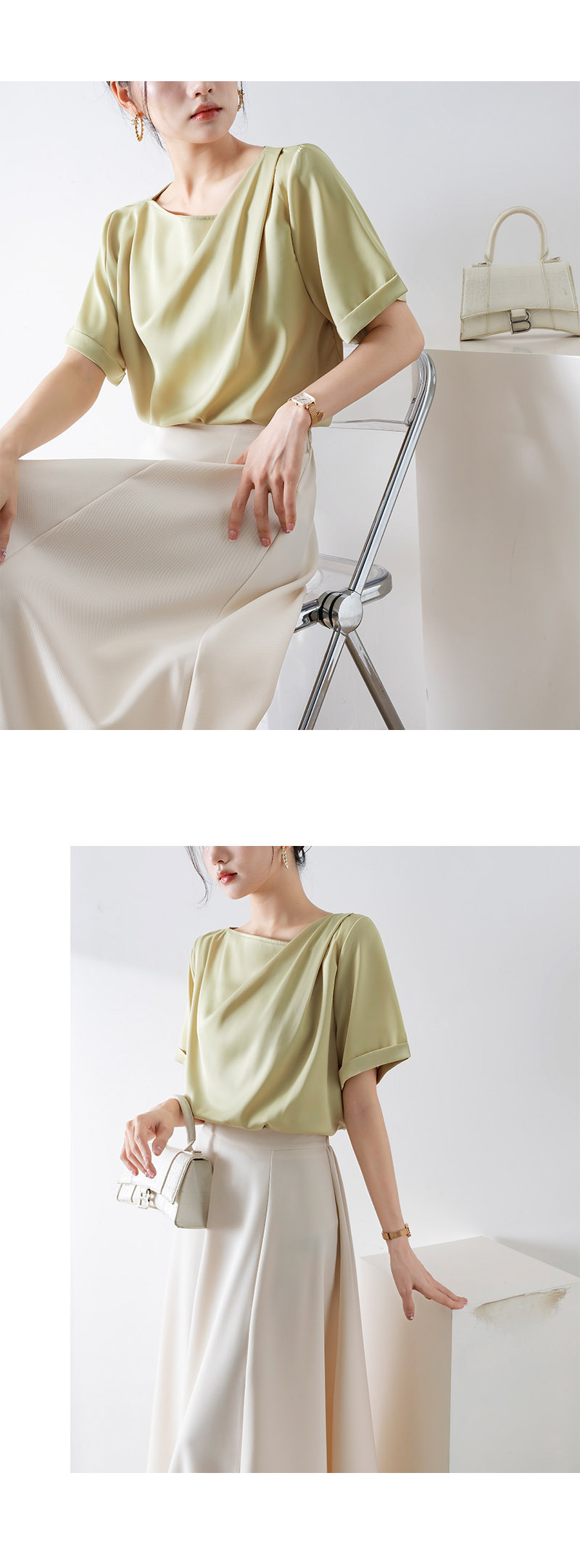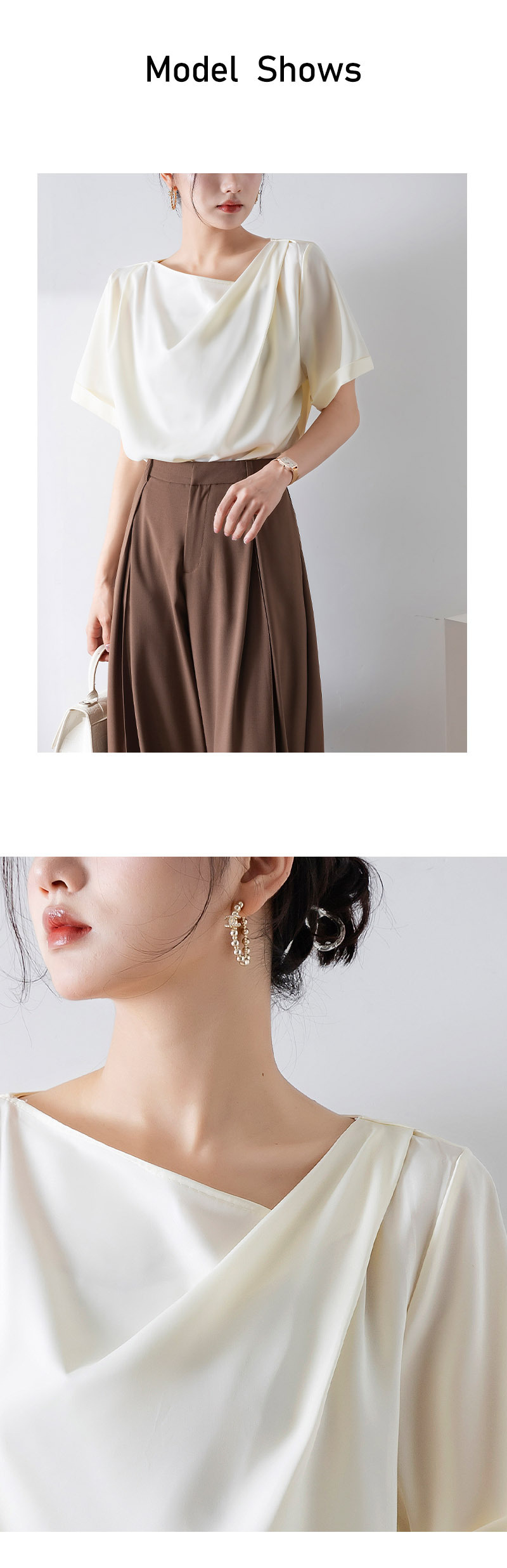 디자인 센스 틈새 새틴 쉬폰 셔츠 여성의 여름 프랑스 느슨한 슬리밍 캐주얼 실크 티셔츠 트렌디 탑스토어 가기