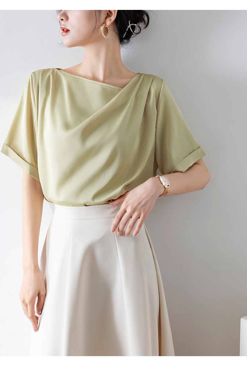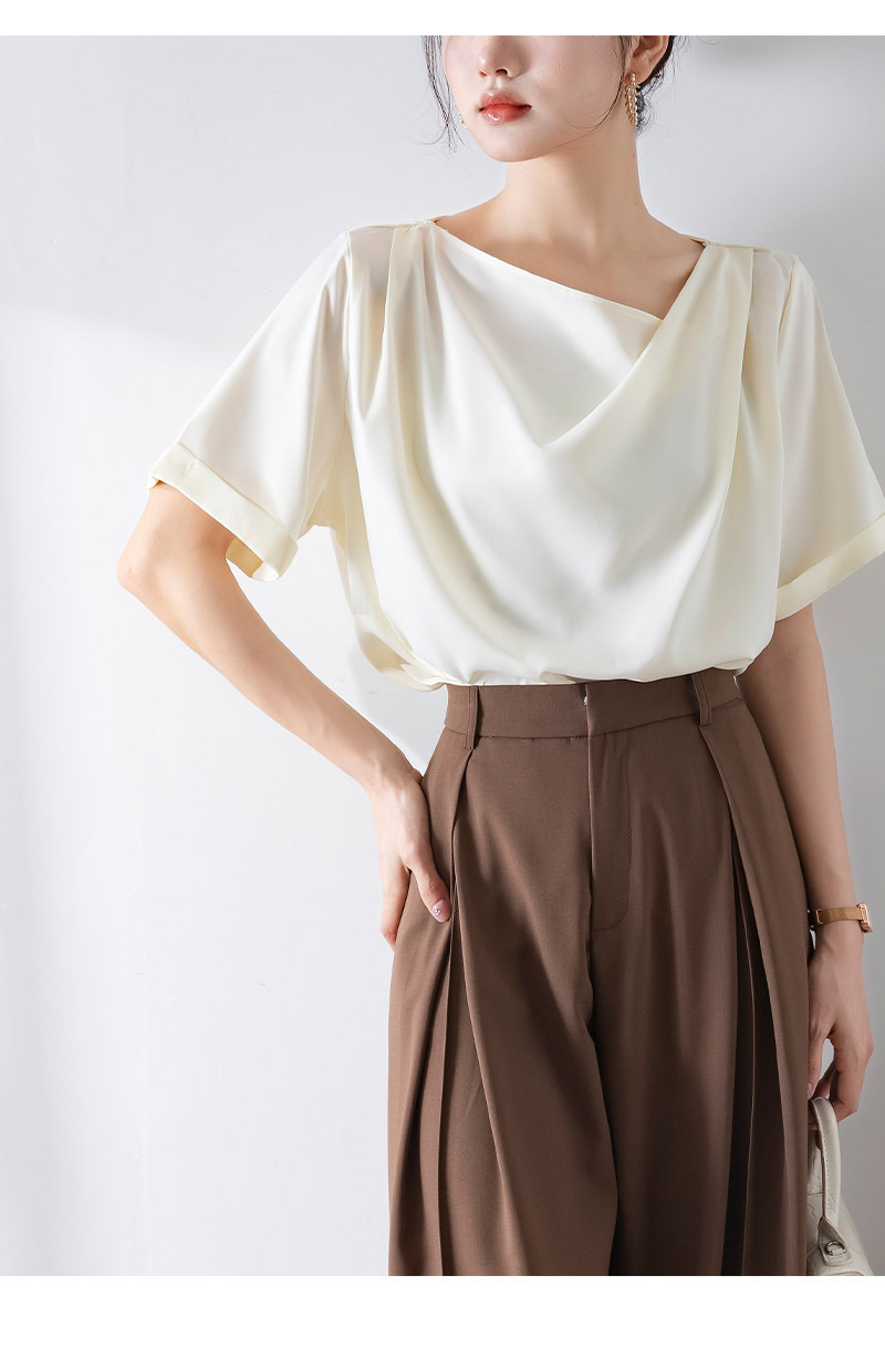 디자인 센스 틈새 새틴 쉬폰 셔츠 여성의 여름 프랑스 느슨한 슬리밍 캐주얼 실크 티셔츠 트렌디 탑