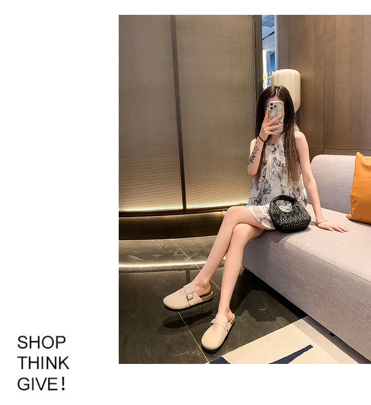 영국 스타일 Boken 신발 여성 2024 여름 새로운 스타일 Baotou 플랫 반 슬리퍼 인터넷 인기 유행 편안한 게으른 슬리퍼스토어 가기