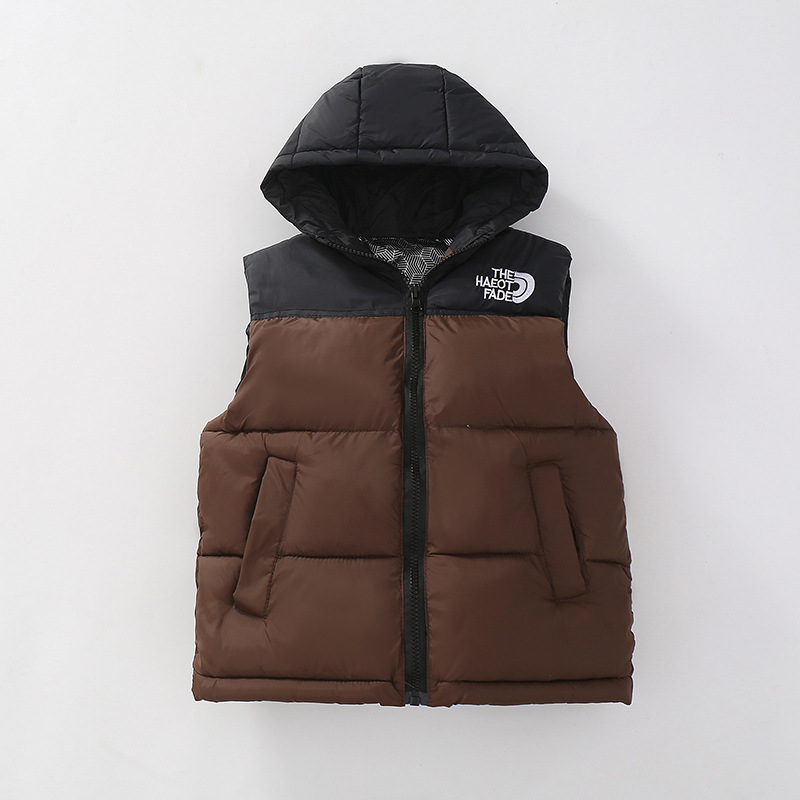 어린이 양복 조끼 가을과 겨울 소년 소녀 후드 양복 조끼 중형 및 대형 어린이 다운 후드 후드 양복 조끼 다용도