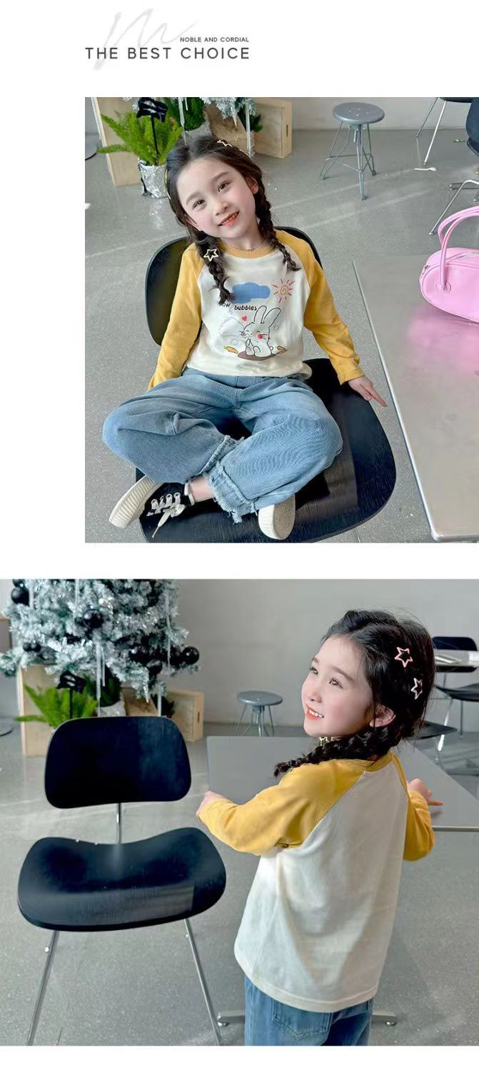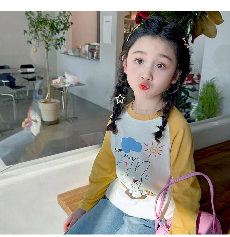 2024 새로운 소녀 가을 새 라글란 소매 긴 티셔츠 아기 만화 귀여운 캐주얼 베이스 탑스토어 가기