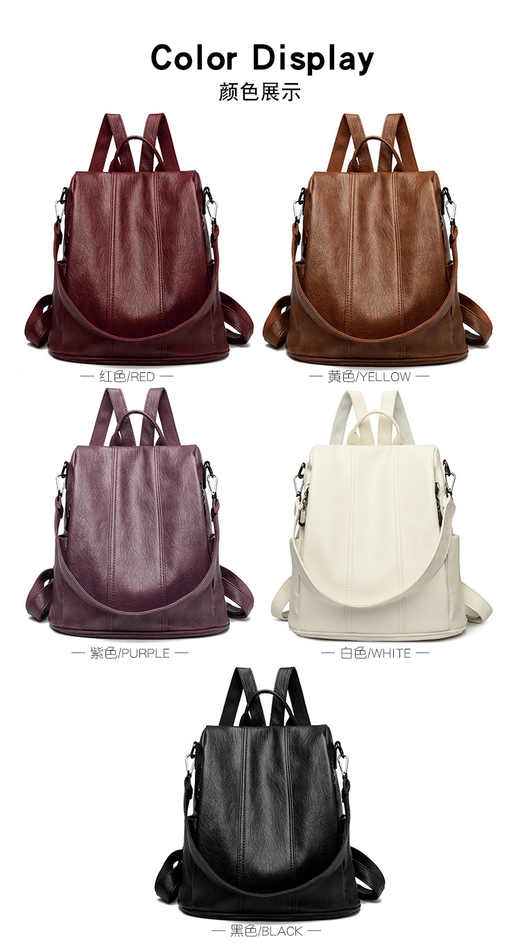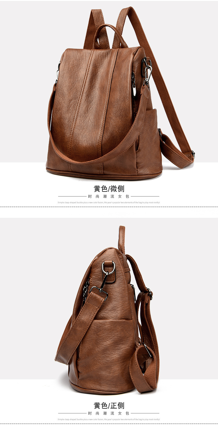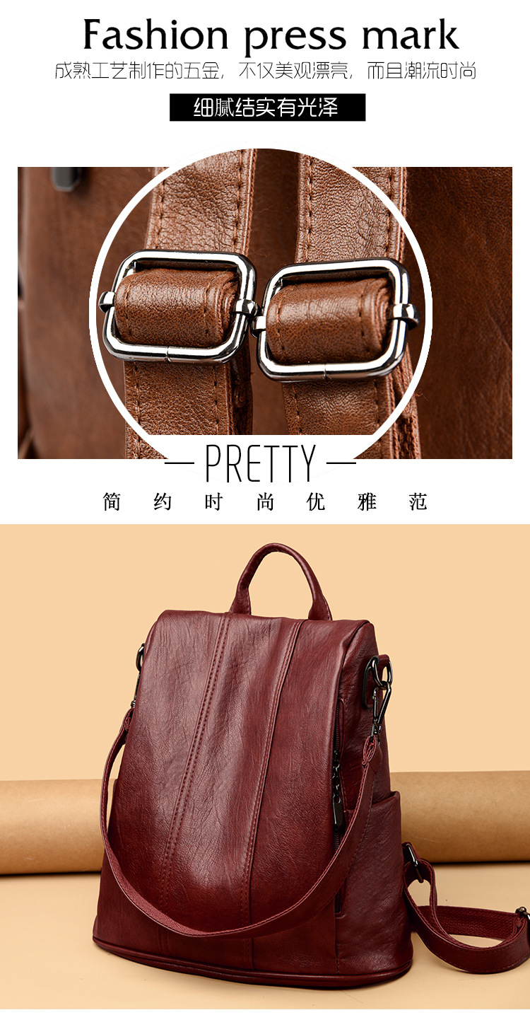 새로운 도난 방지 가죽 배낭 복고풍 여성 패션 하이 엔드 한국 배낭 간단하고 다재다능한 대용량