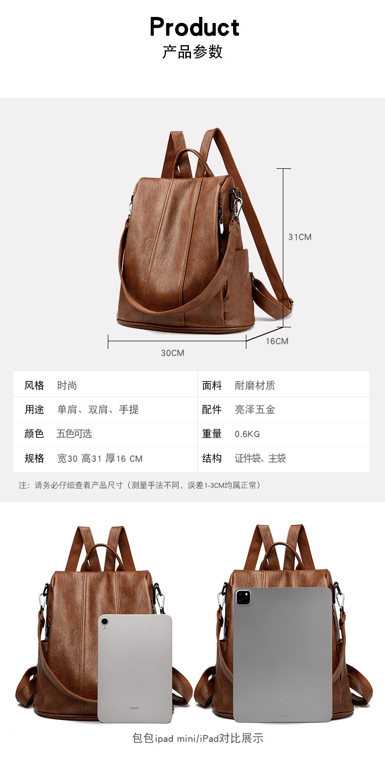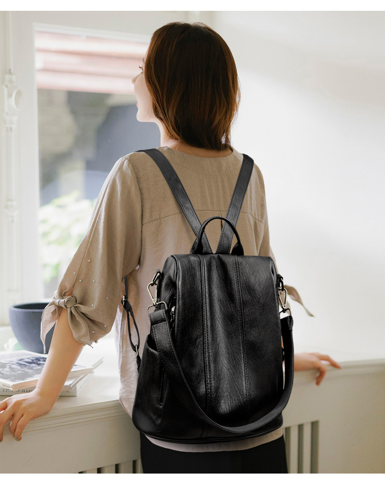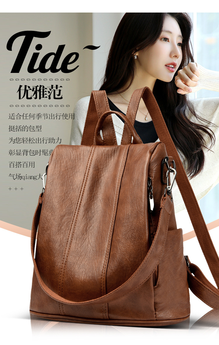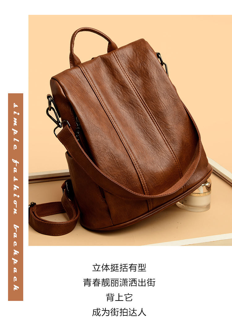 새로운 도난 방지 가죽 배낭 복고풍 여성 패션 하이 엔드 한국 배낭 간단하고 다재다능한 대용량