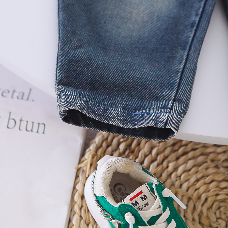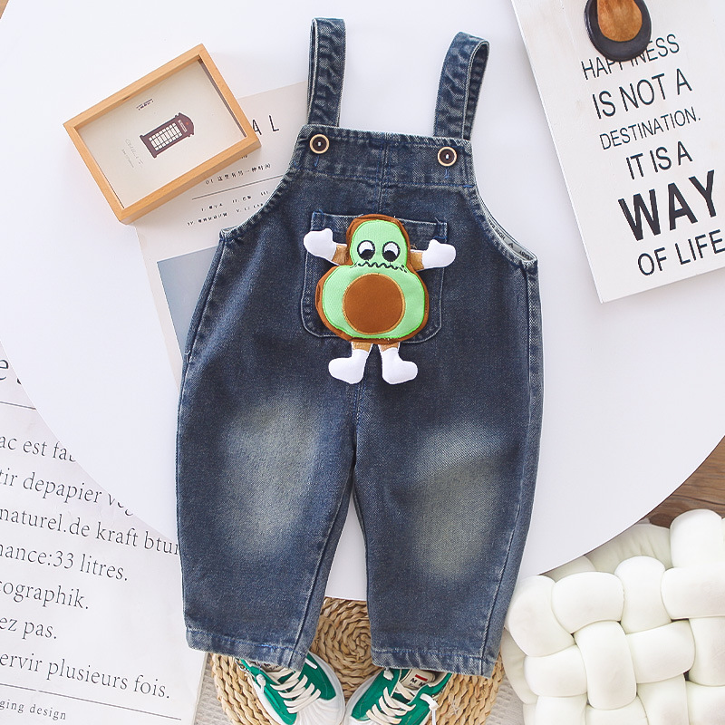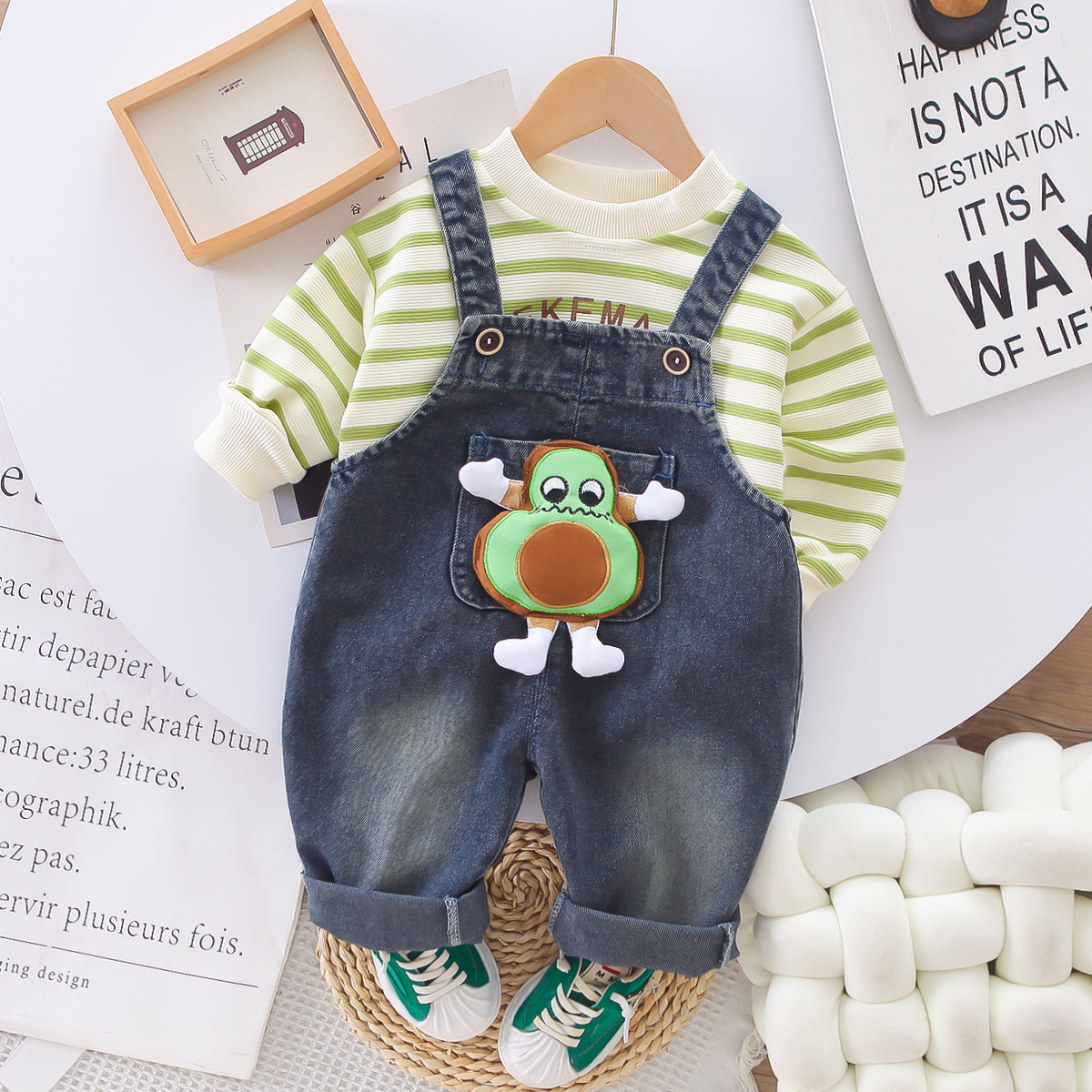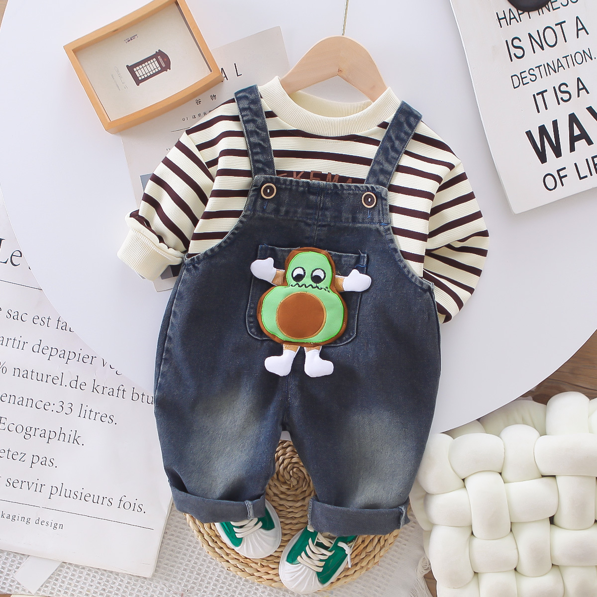 소년의 봄과 가을 데님 스트랩 바지 세트 서양식 새로운 아기 어린이 가을 옷 아기의 긴 소매 스웨터 투피스 세트