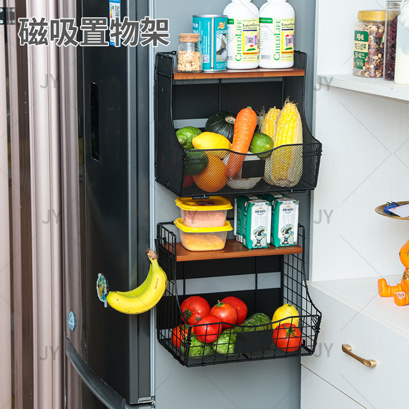 벽걸이 형 주방 선반 가정용 다층 스토리지 스토리지 랙 분리형 자기 냉장고 과일 스토리지 랙