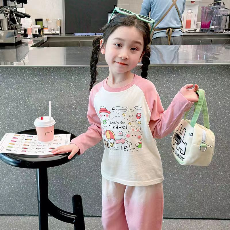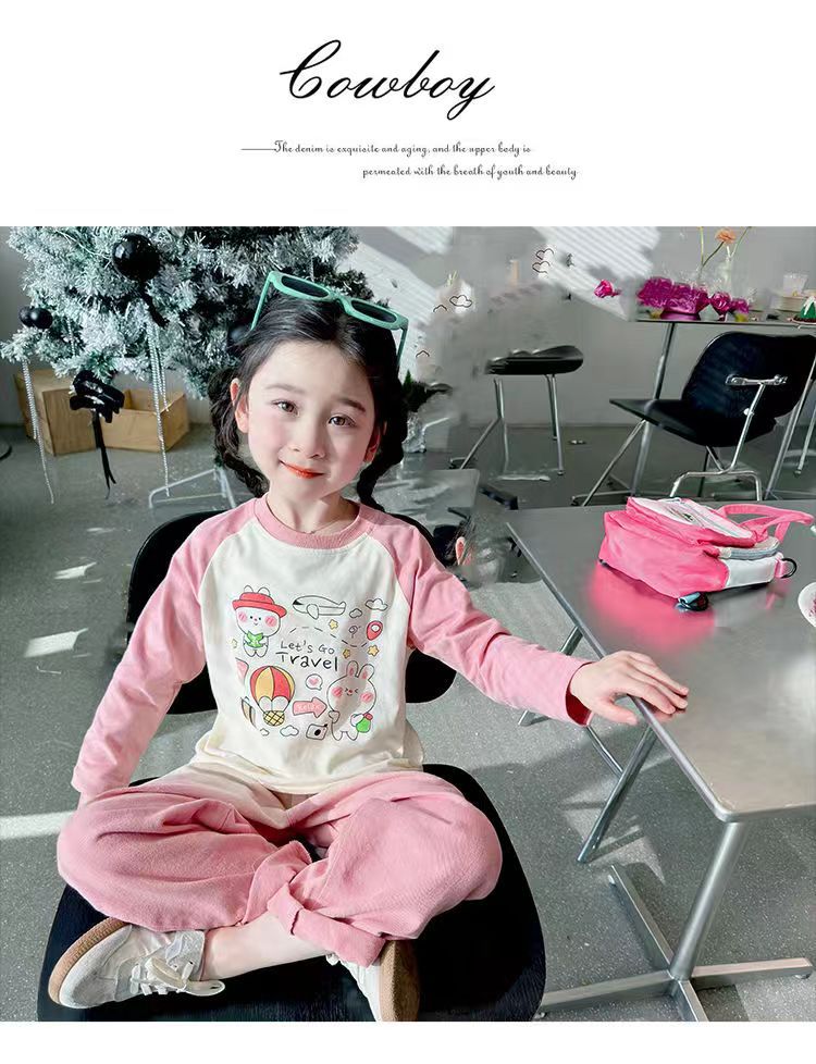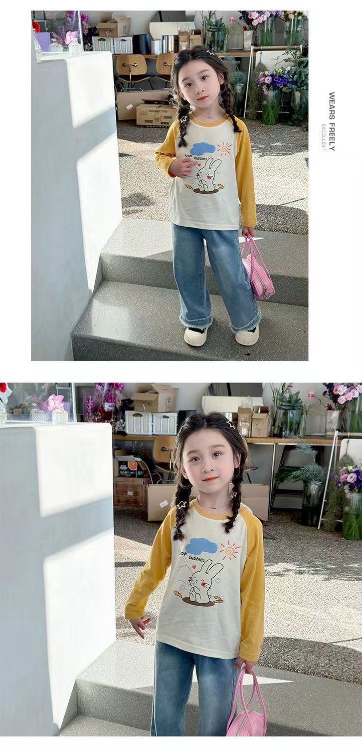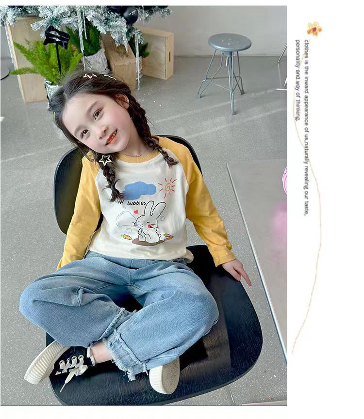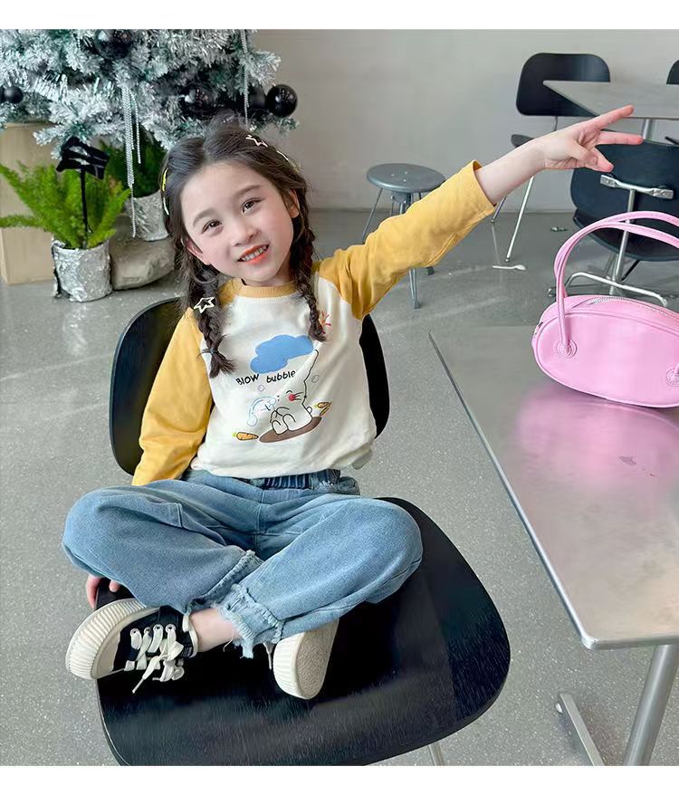 2024 새로운 소녀 가을 라글란 소매 긴 티셔츠 아기 만화 귀여운 캐주얼 보텀링 소녀 탑 외부 착용스토어 가기