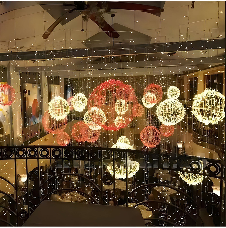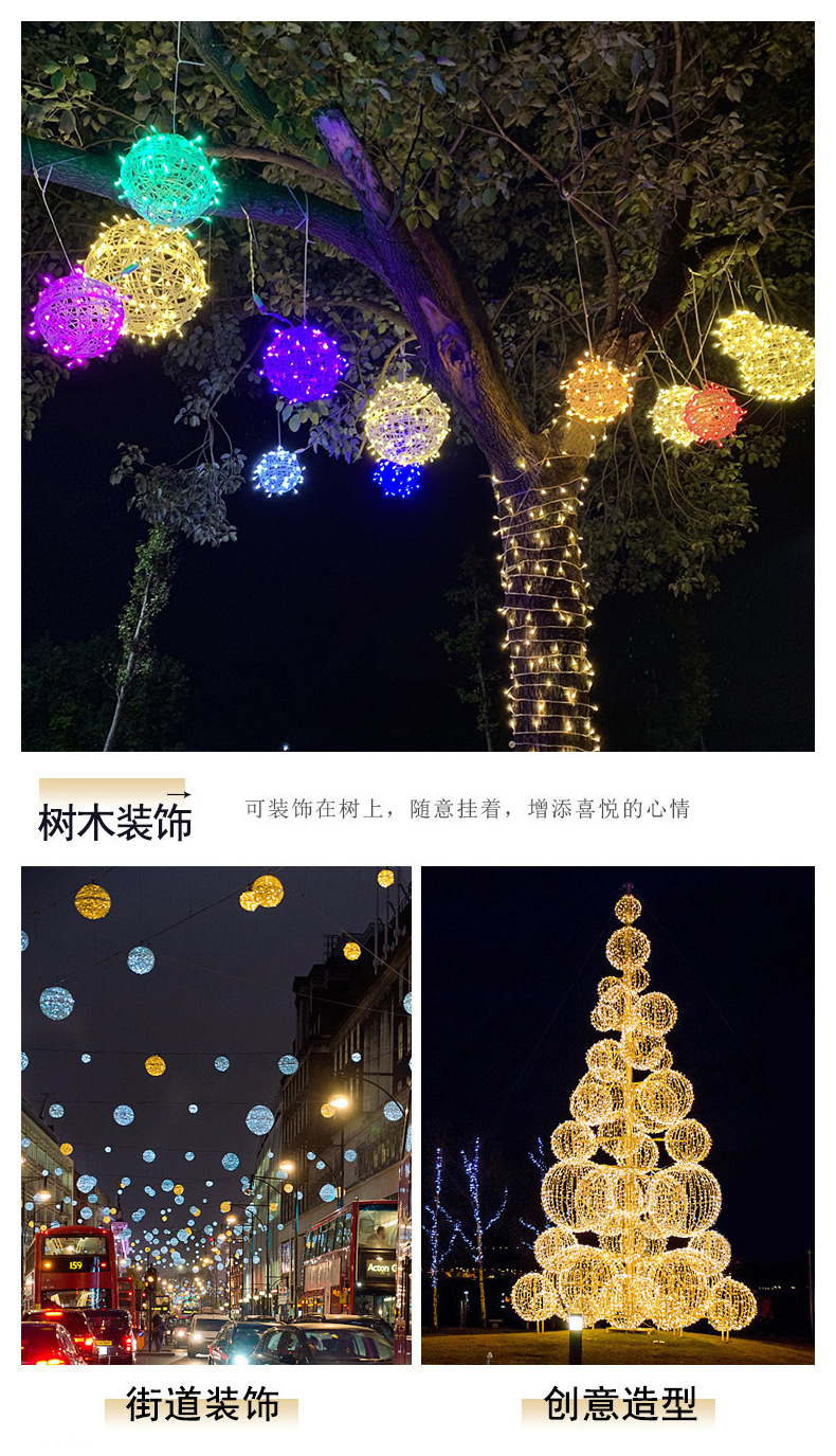 방수 축제 장식 조명 예술 축제 조명 표시 공기 복도 매달려 등나무 볼 조명 Led 문자열 구면 모양의 조명스토어 가기
