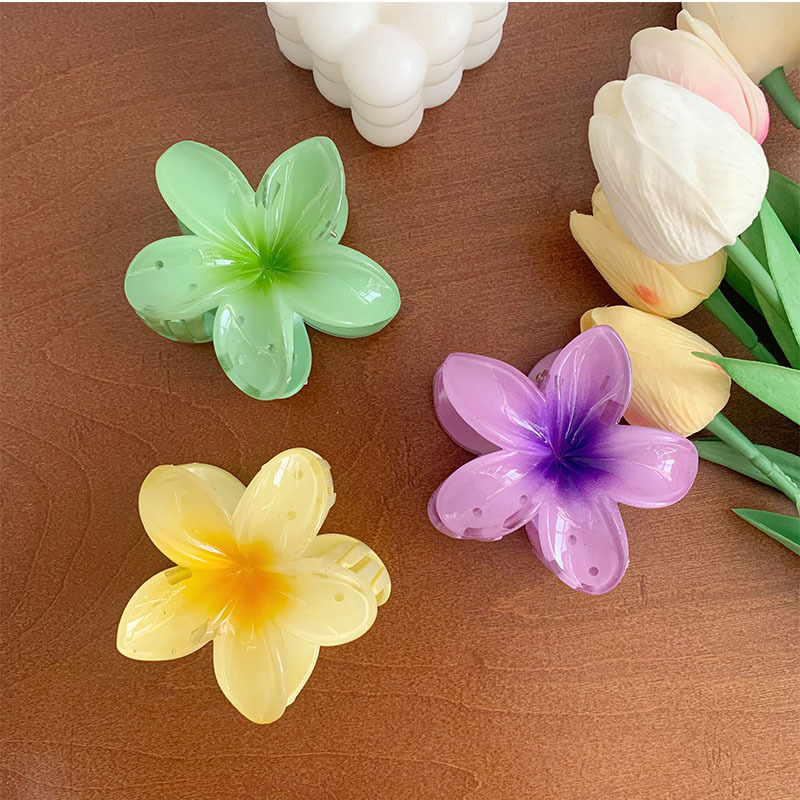 8cm 보라색 금색 꽃 유럽과 미국의 국경 간 머리핀 아마존 헤어 액세서리 Plumeria 클립 도매 상어 클립 꽃 머리핀