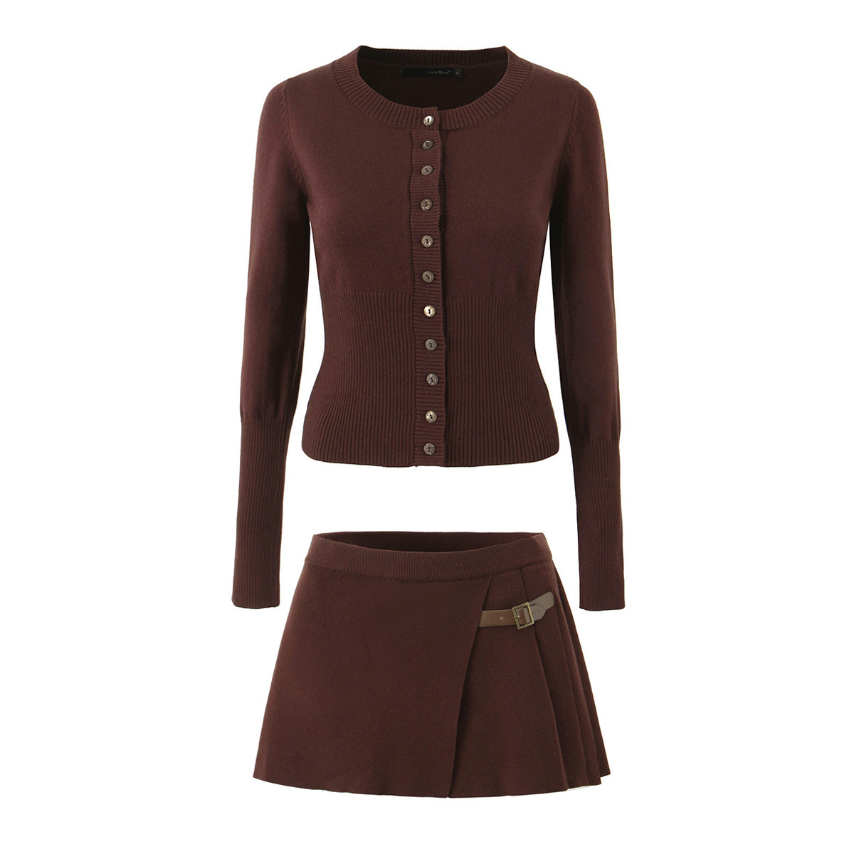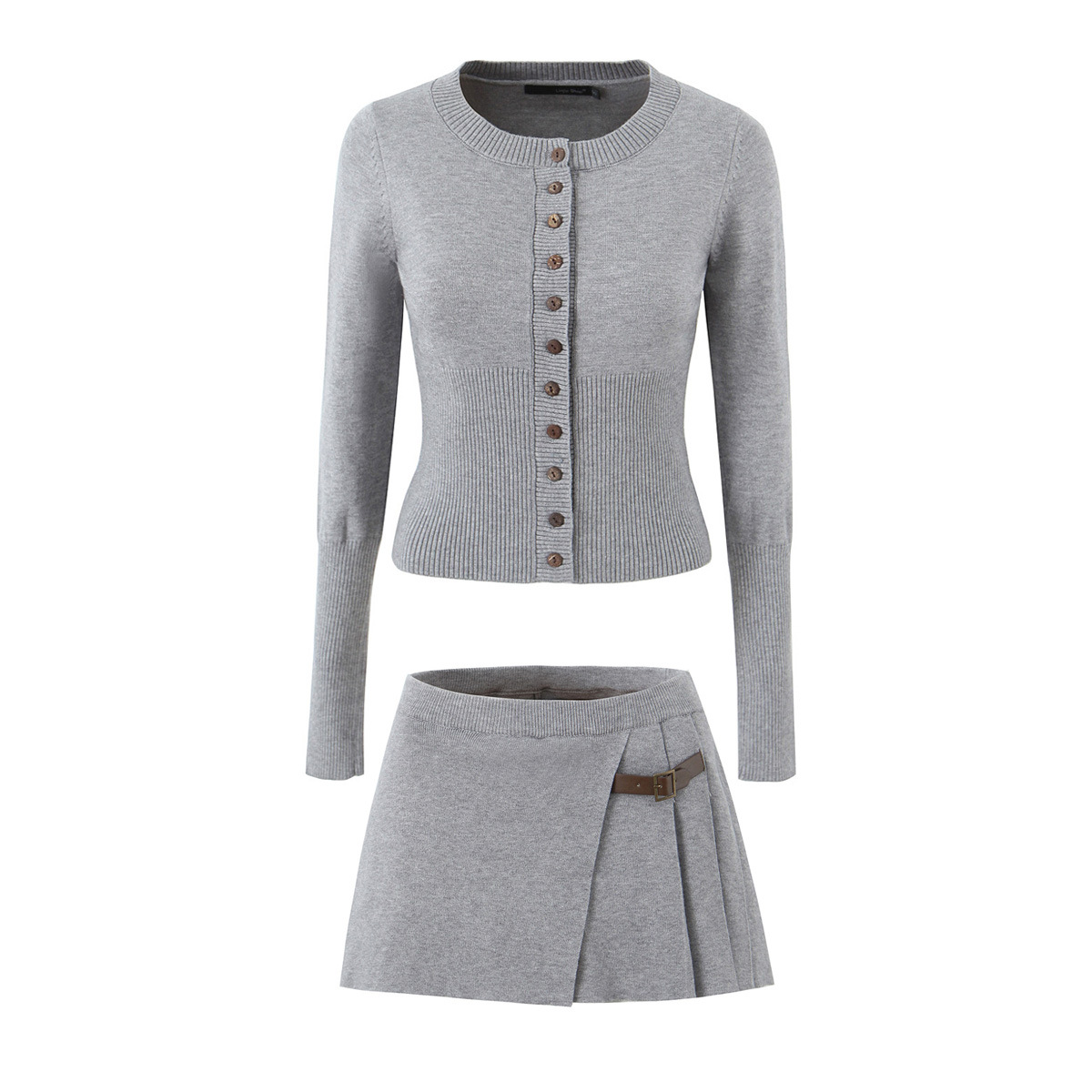 니트 세트 여성용 2025 가을 스타일 세련된 핏 버튼 니트 가디건+하이웨이스트 가죽 버튼 플리츠 스커트스토어 가기