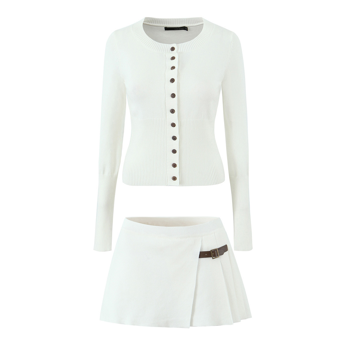 니트 세트 여성용 2025 가을 스타일 세련된 핏 버튼 니트 가디건+하이웨이스트 가죽 버튼 플리츠 스커트