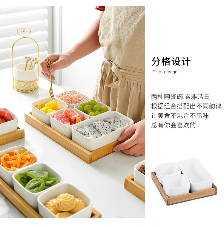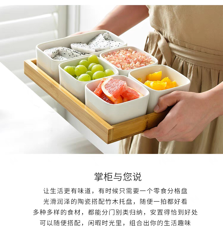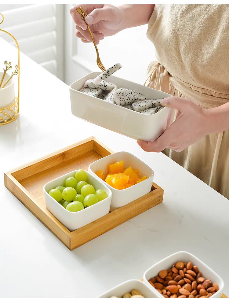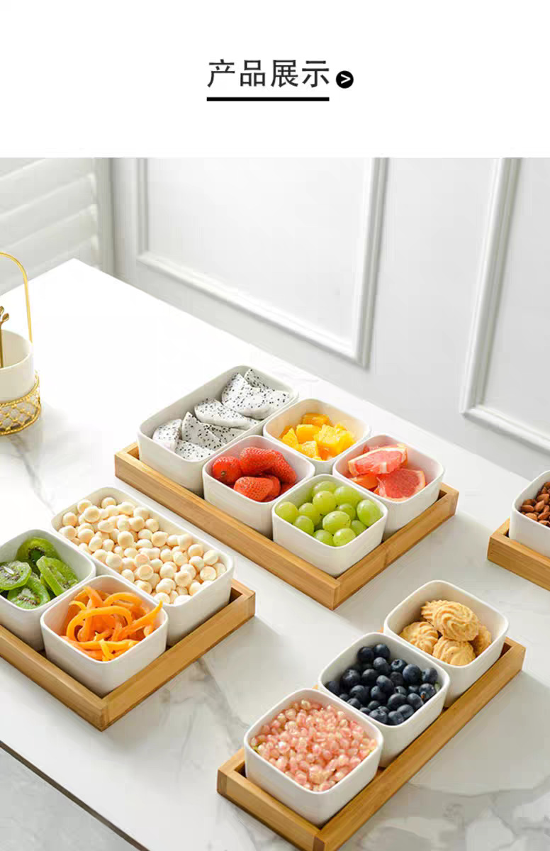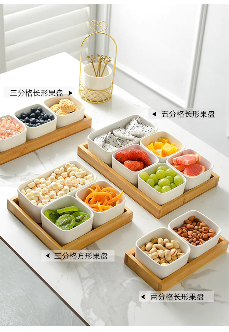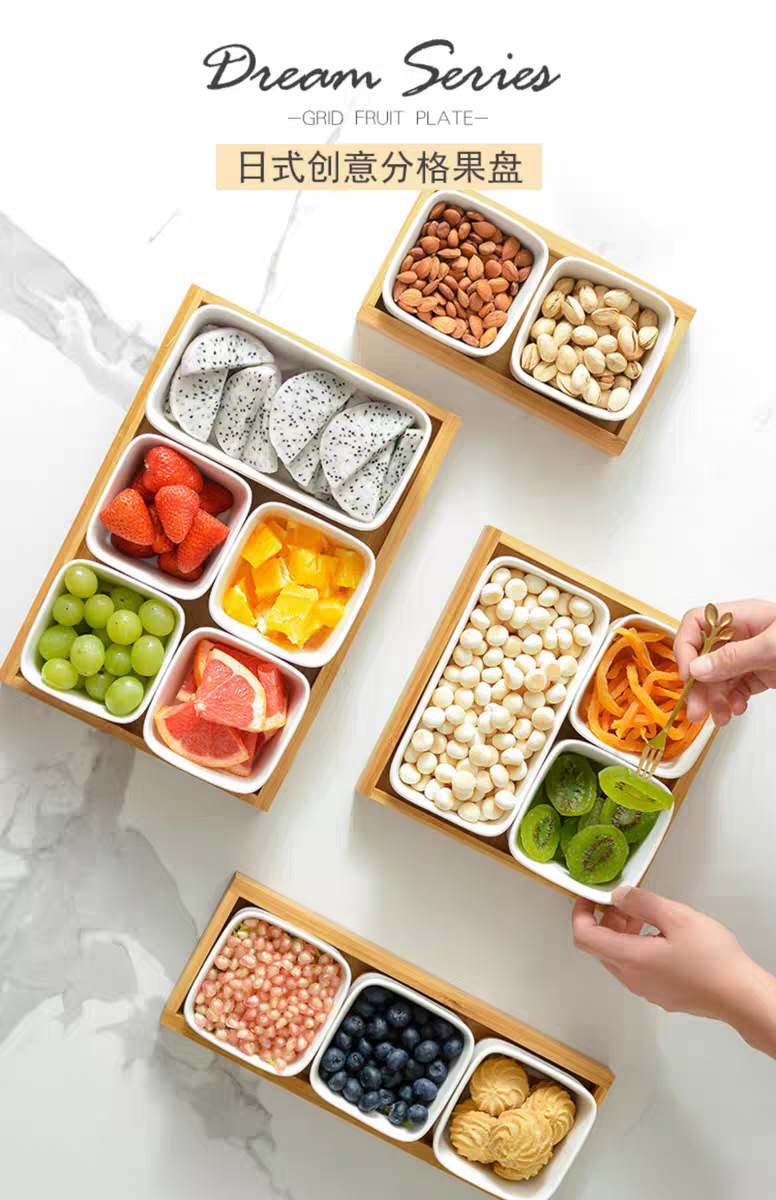 일본식 세라믹 대나무와 나무 갈라진 말린 과일 접시 간식 저장 상자 과일 플레이트 나누기 접시 간판 나무 트레이