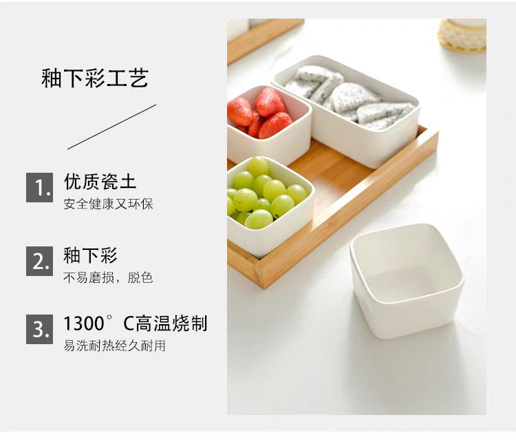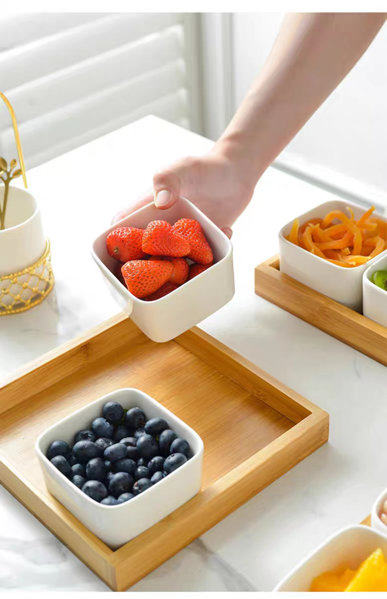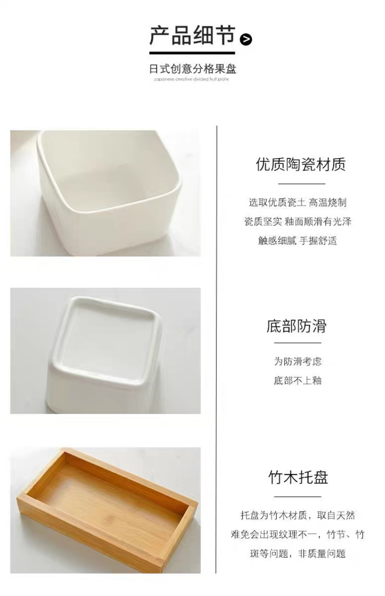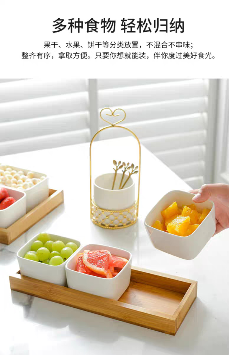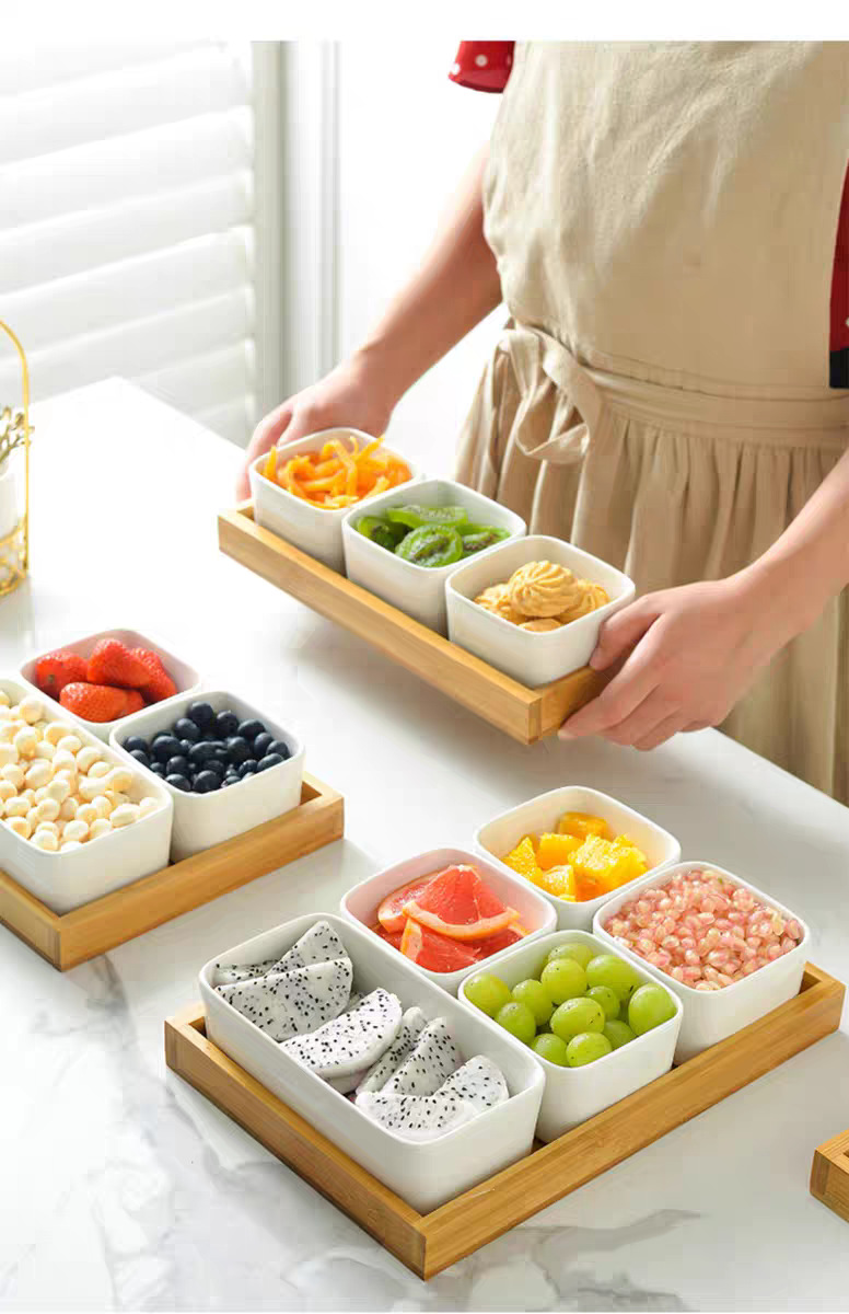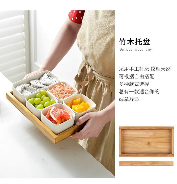 일본식 세라믹 대나무와 나무 갈라진 말린 과일 접시 간식 저장 상자 과일 플레이트 나누기 접시 간판 나무 트레이