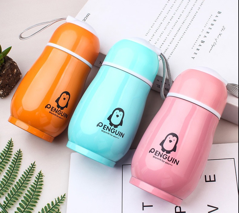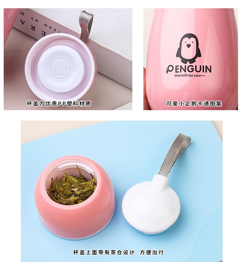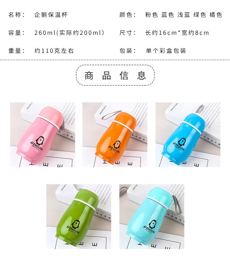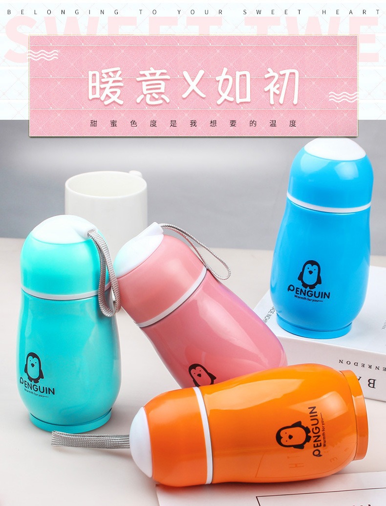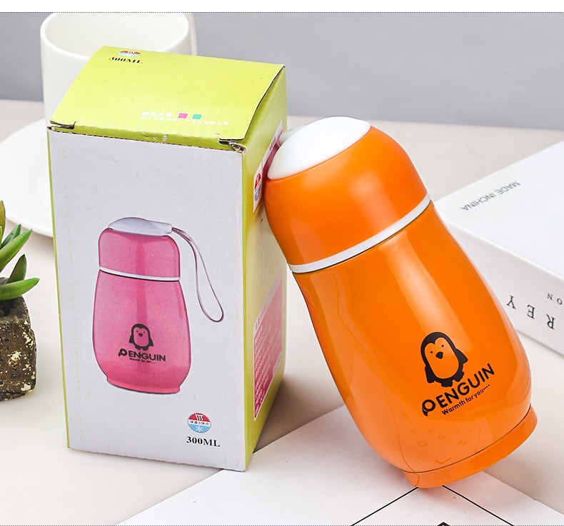 만화 스테인레스 스틸 보온병 컵 어린이 야외 휴대용 펭귄 워터 컵 유치원 학생 더블 레이어 일정한 온도 빅 벨리 컵스토어 가기