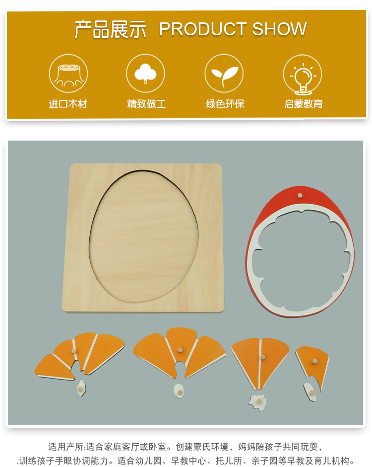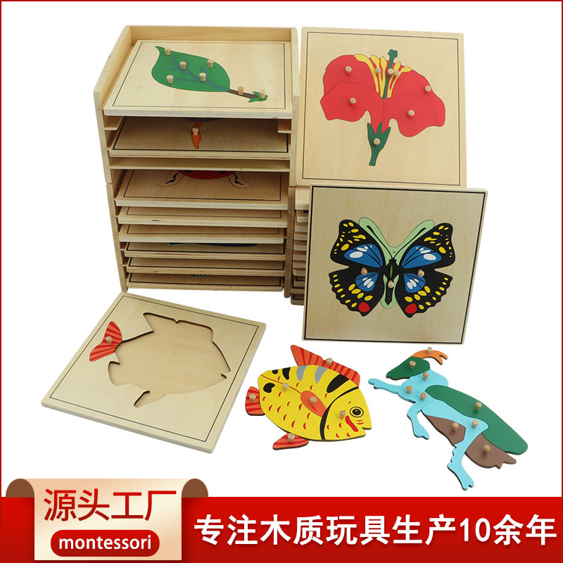 Huimeng Montessori 단단한 나무 어린이 과학 동물 및 식물 나무 퍼즐 오렌지 퍼즐 나무 조기 교육 몬테소리 교육 원조