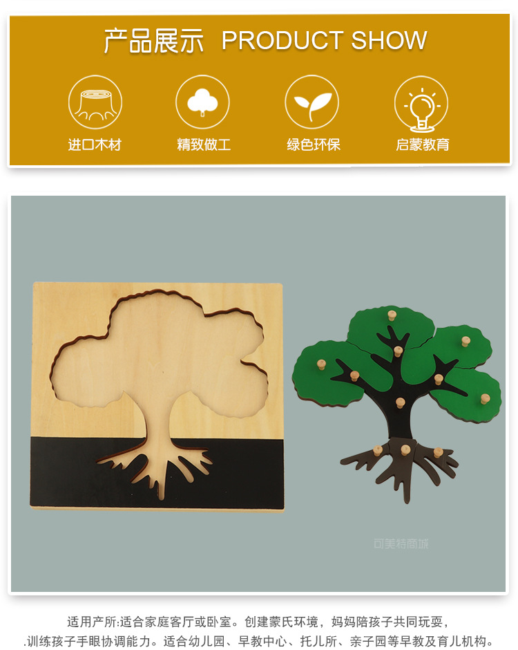 Huimeng Montessori 단단한 나무 어린이 과학 동물 및 식물 나무 퍼즐 오렌지 퍼즐 나무 조기 교육 몬테소리 교육 원조스토어 가기