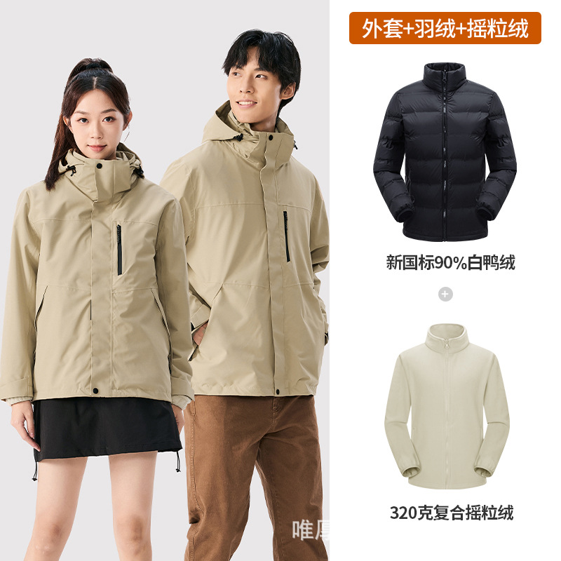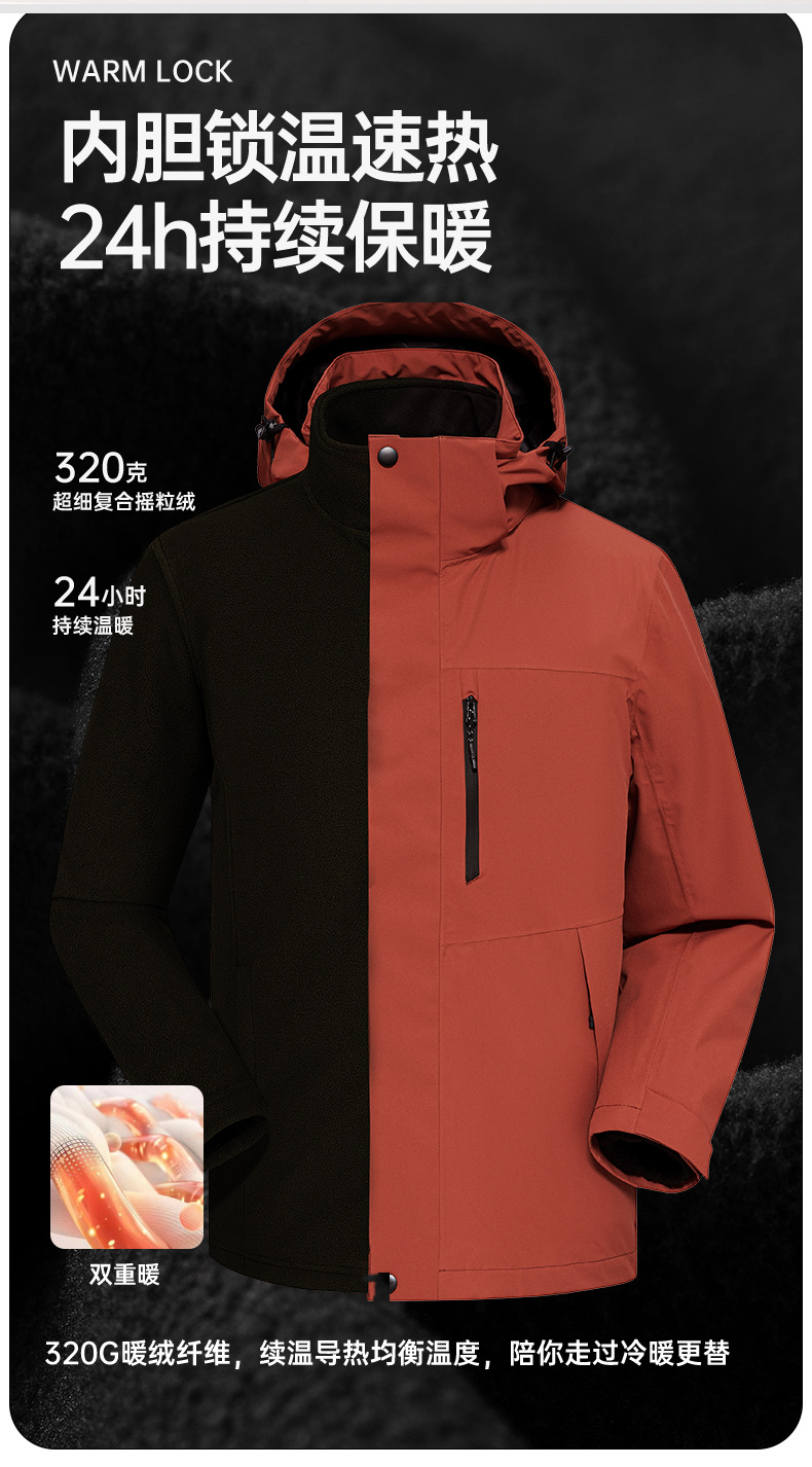남성용 탈착식 양털 안감 투피스 세트가 포함된 여성용 3-in-1 재킷, 남성용 여행용 방수 등산 재킷