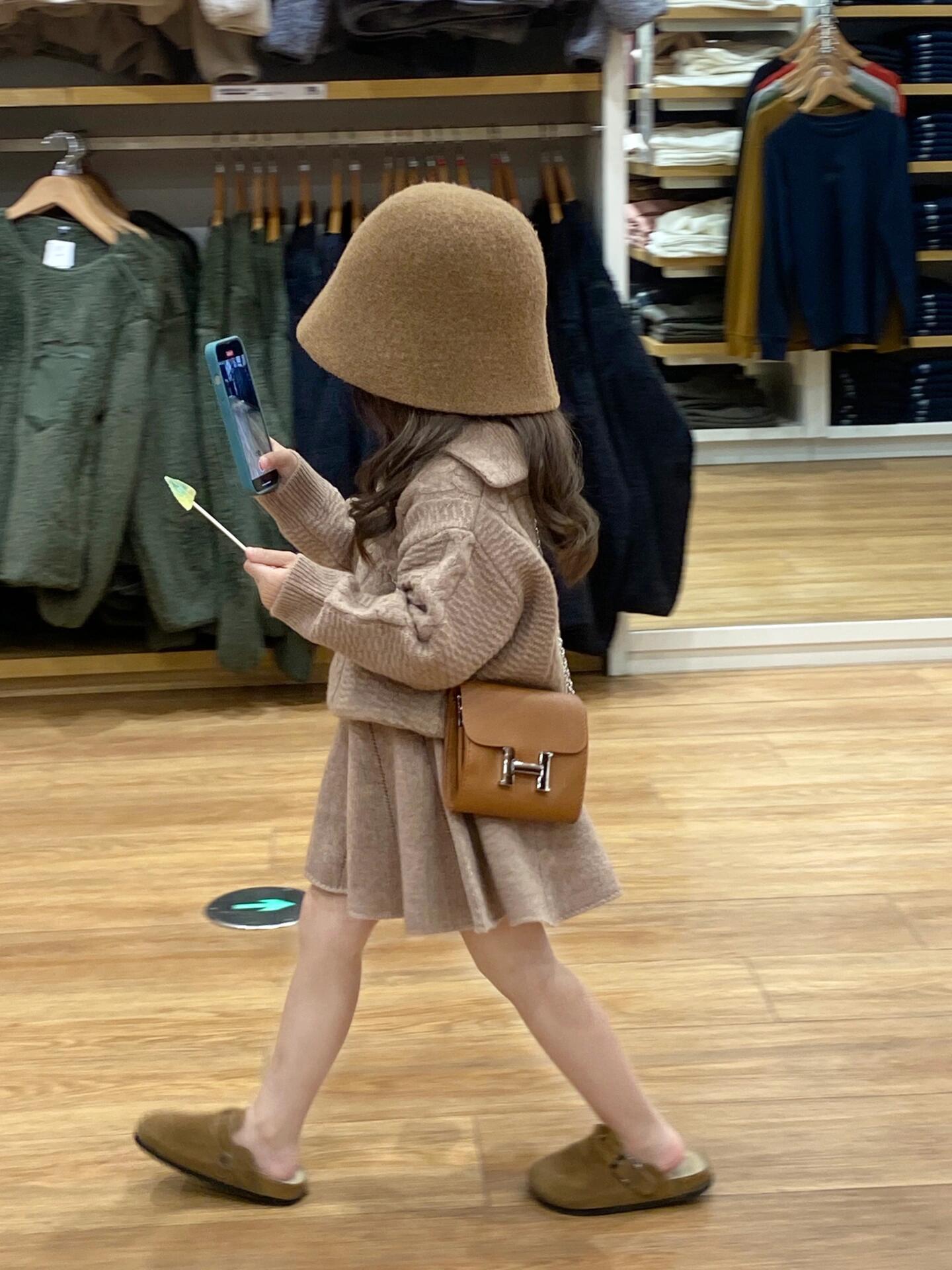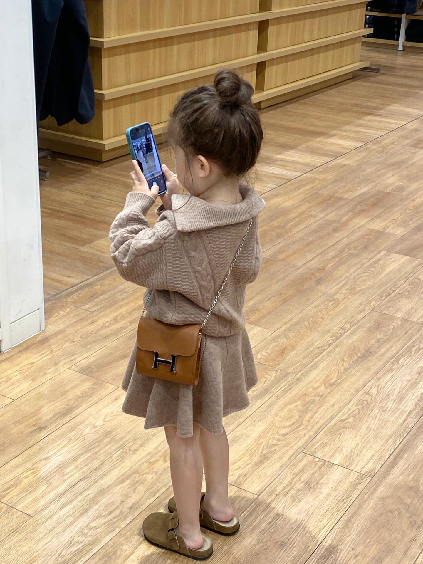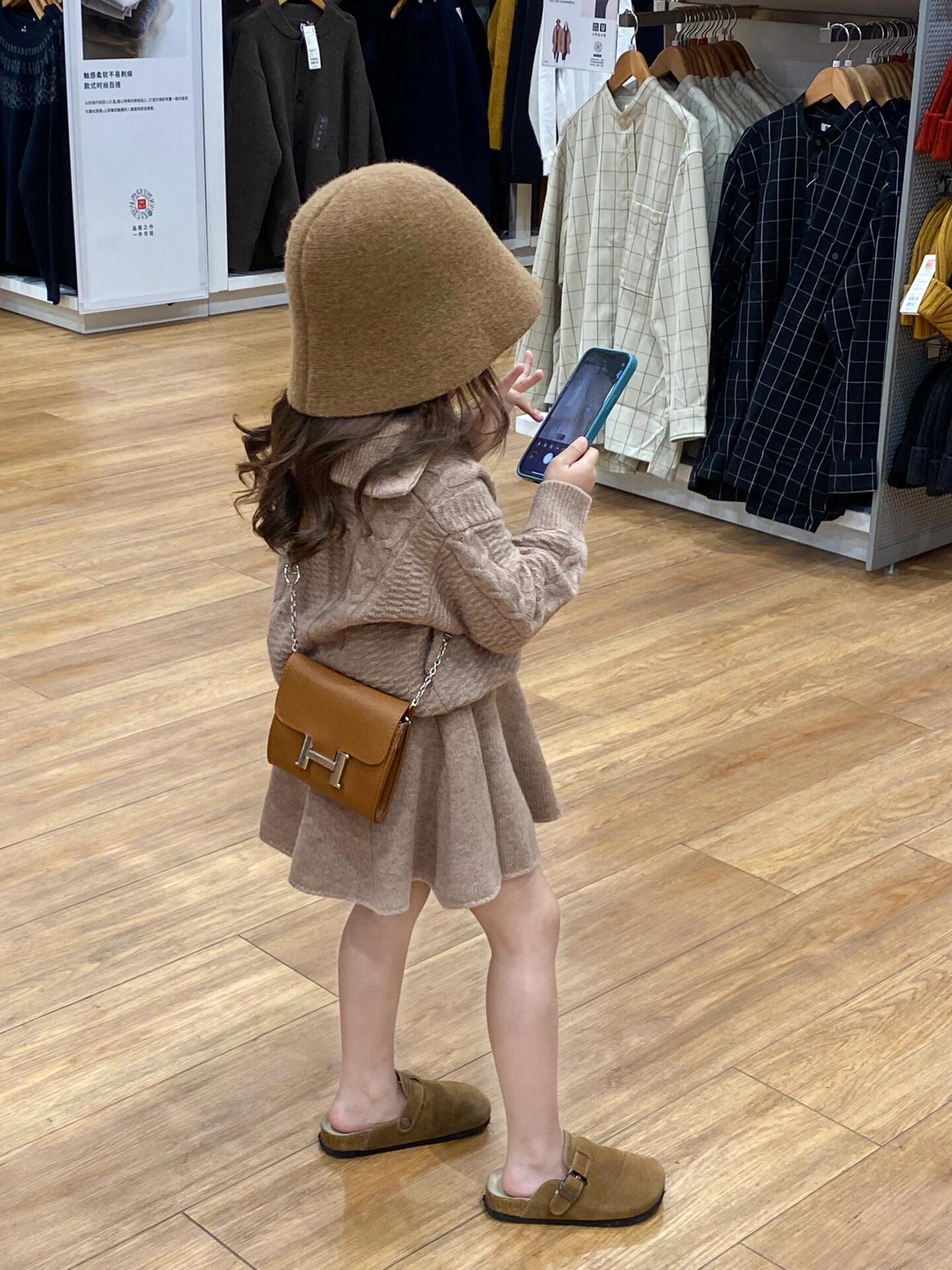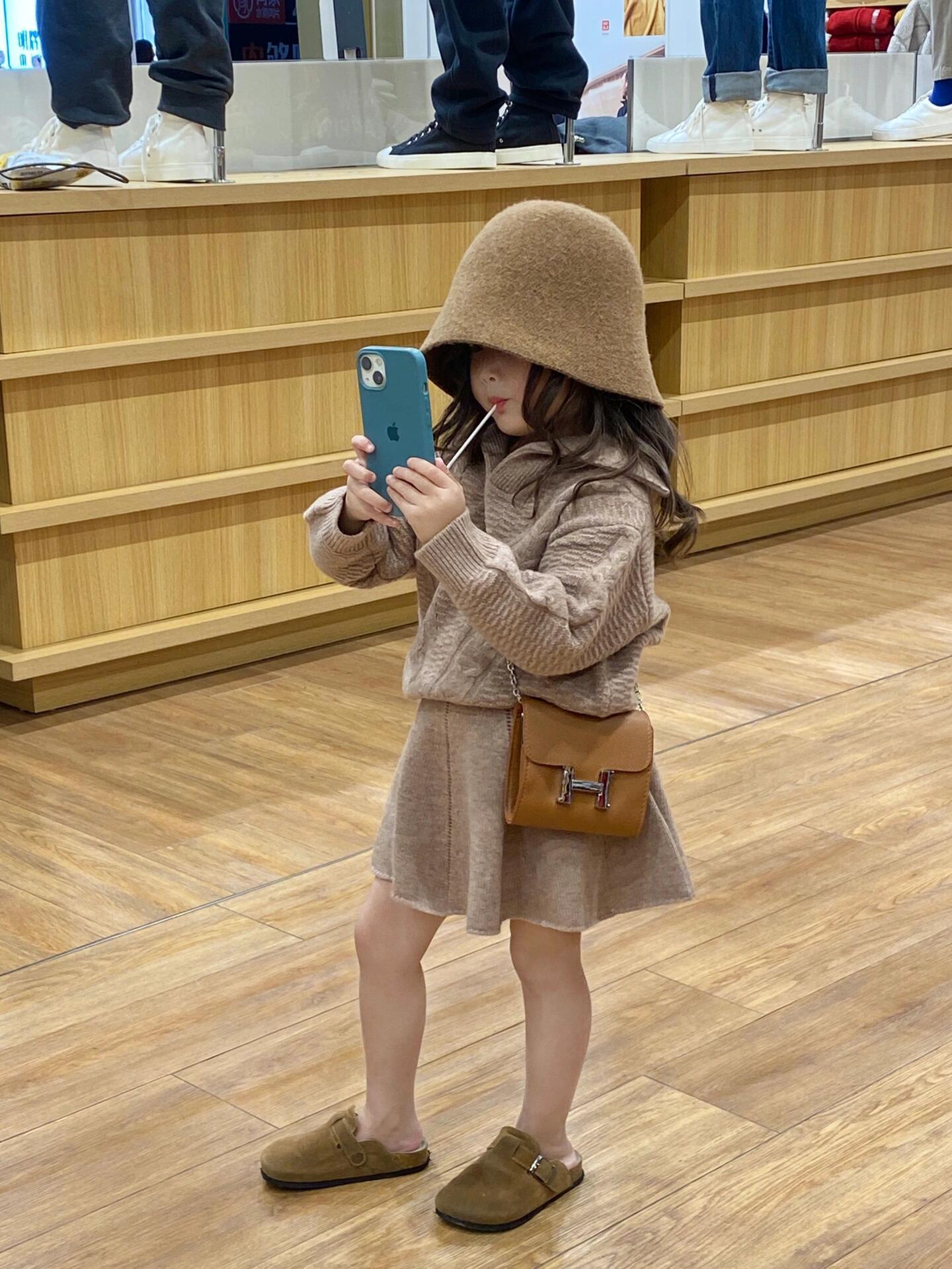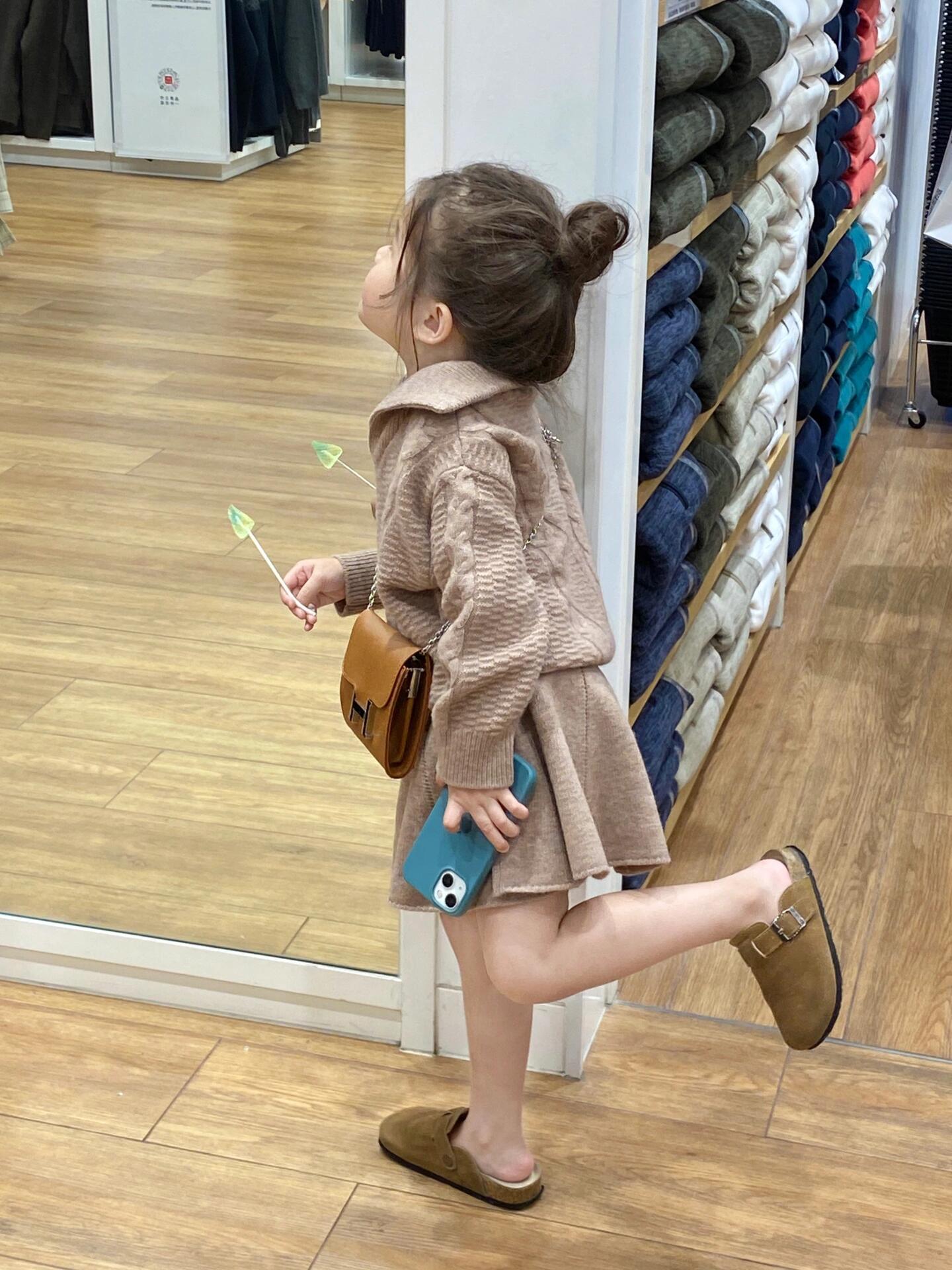 소녀의 가을과 겨울 의류 유행 우아한 니트 양모 탑 코트 하프 길이 스커트 투피스 세트스토어 가기