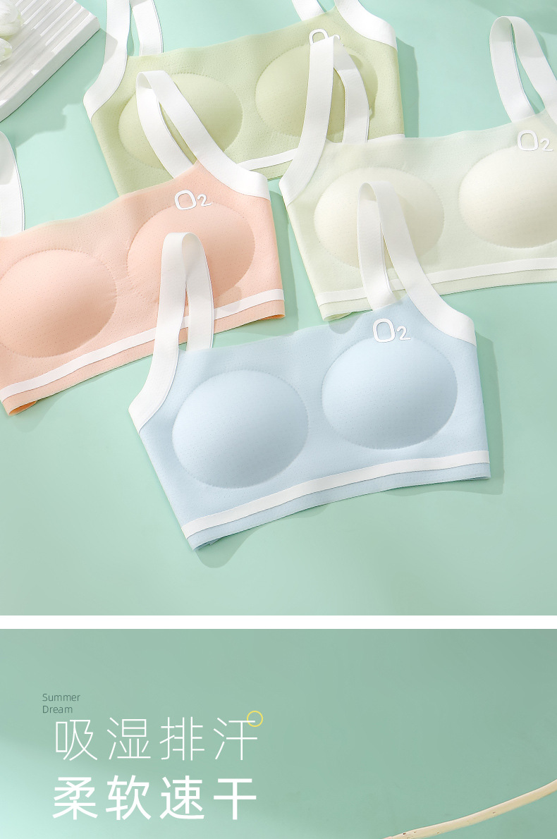 여아 속옷 학생 개발 기간 스포츠 충격 방지 작은 조끼 소녀 여름 추적없는 멋진 통기성 브래지어