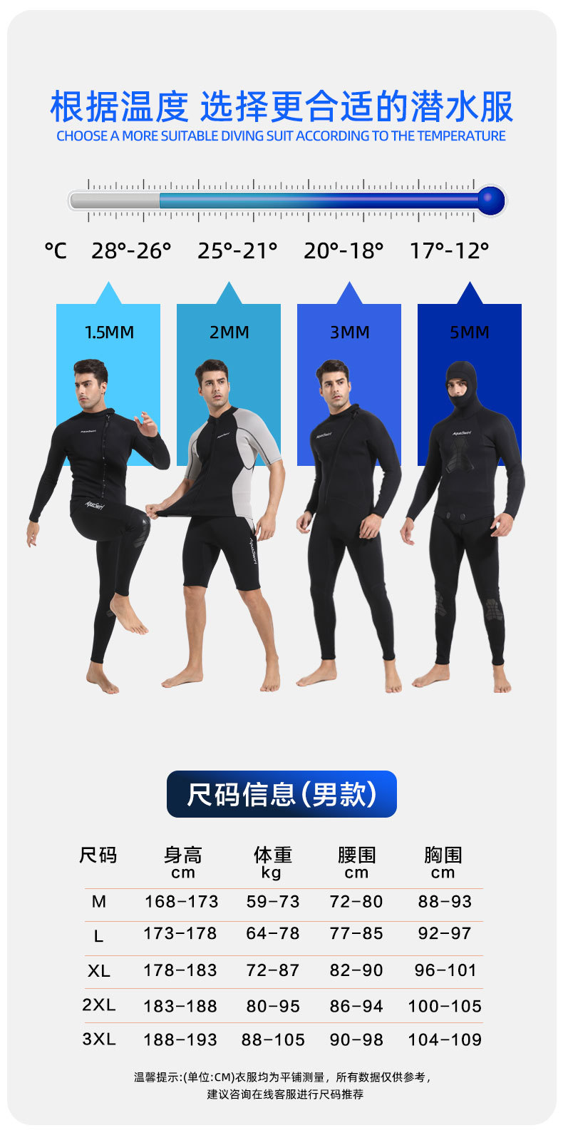 신형 3mm 다이빙 슈트 남성용 일체형 보온 서핑 다이빙 슈트 긴팔 방한 스노클링 겨울 수영복 방한복스토어 가기
