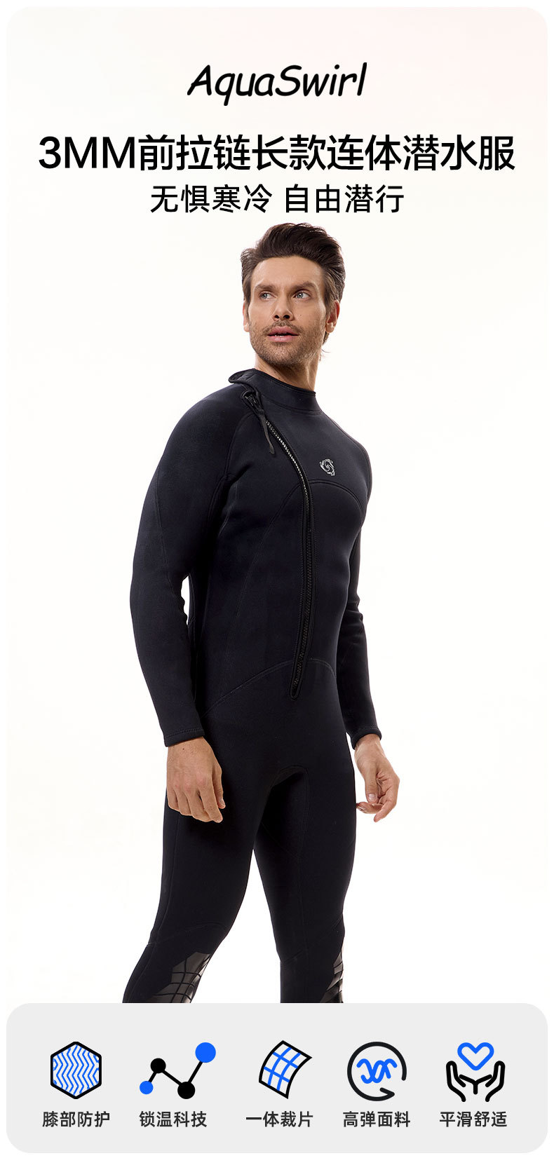 신형 3mm 다이빙 슈트 남성용 일체형 보온 서핑 다이빙 슈트 긴팔 방한 스노클링 겨울 수영복 방한복