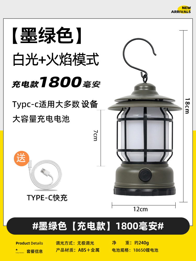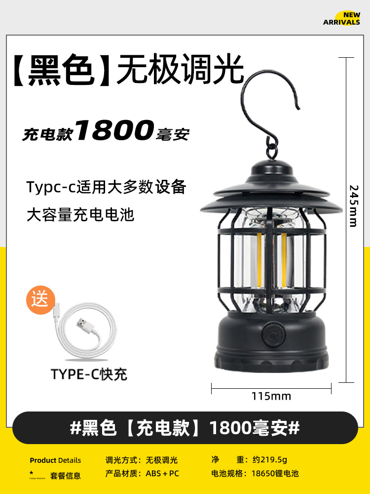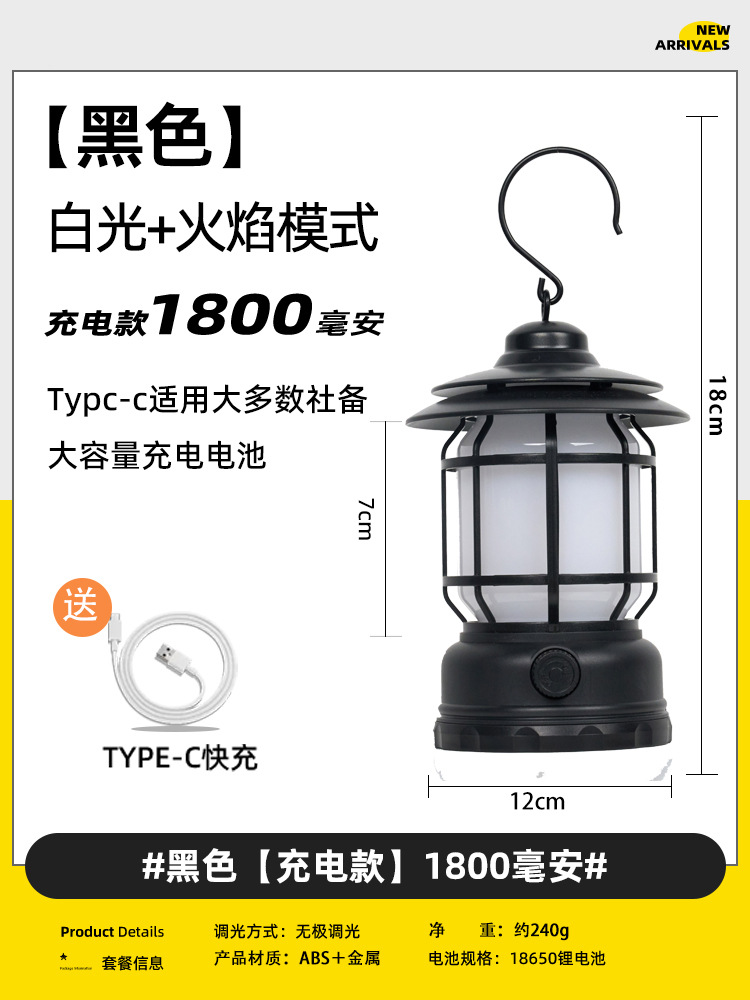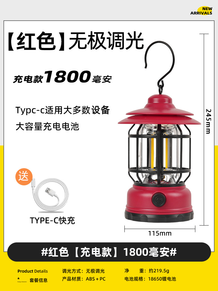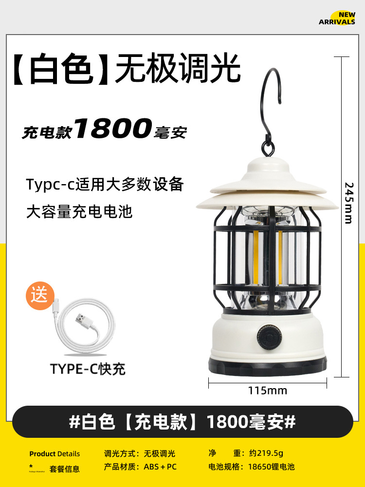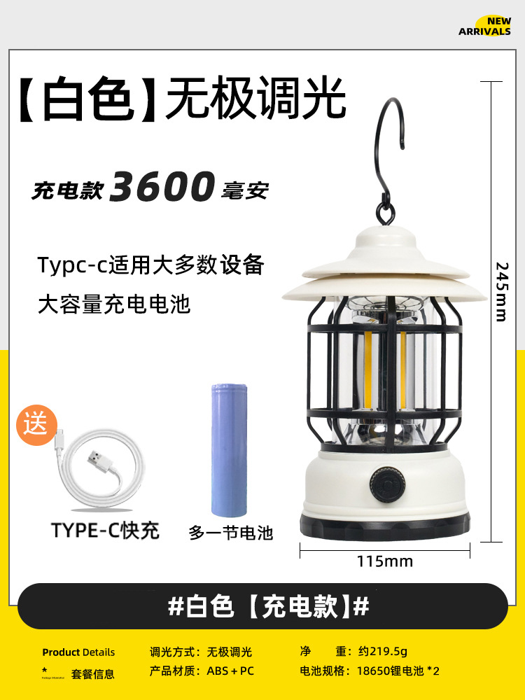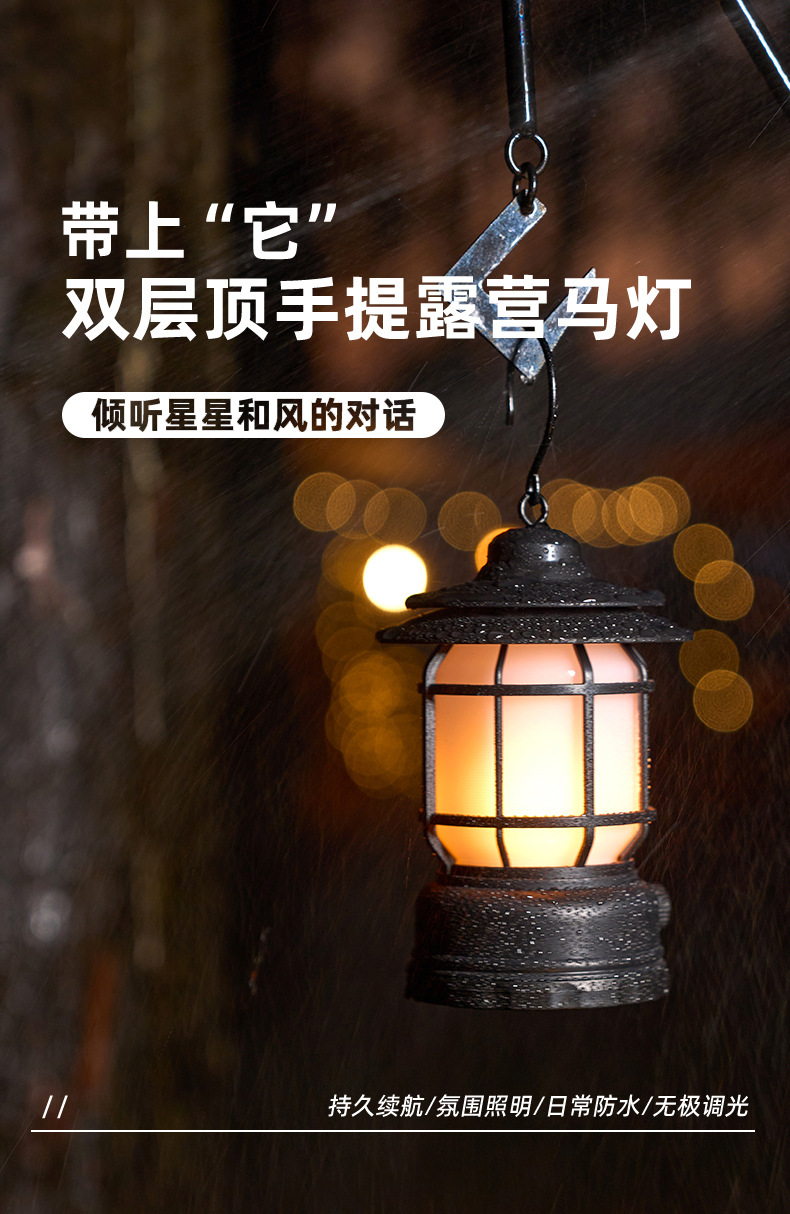 야외 조명 레트로 캠핑 램프 말 램프 충전식 휴대용 램프 비상 텐트 램프 스톨 램프 캠핑 장비스토어 가기