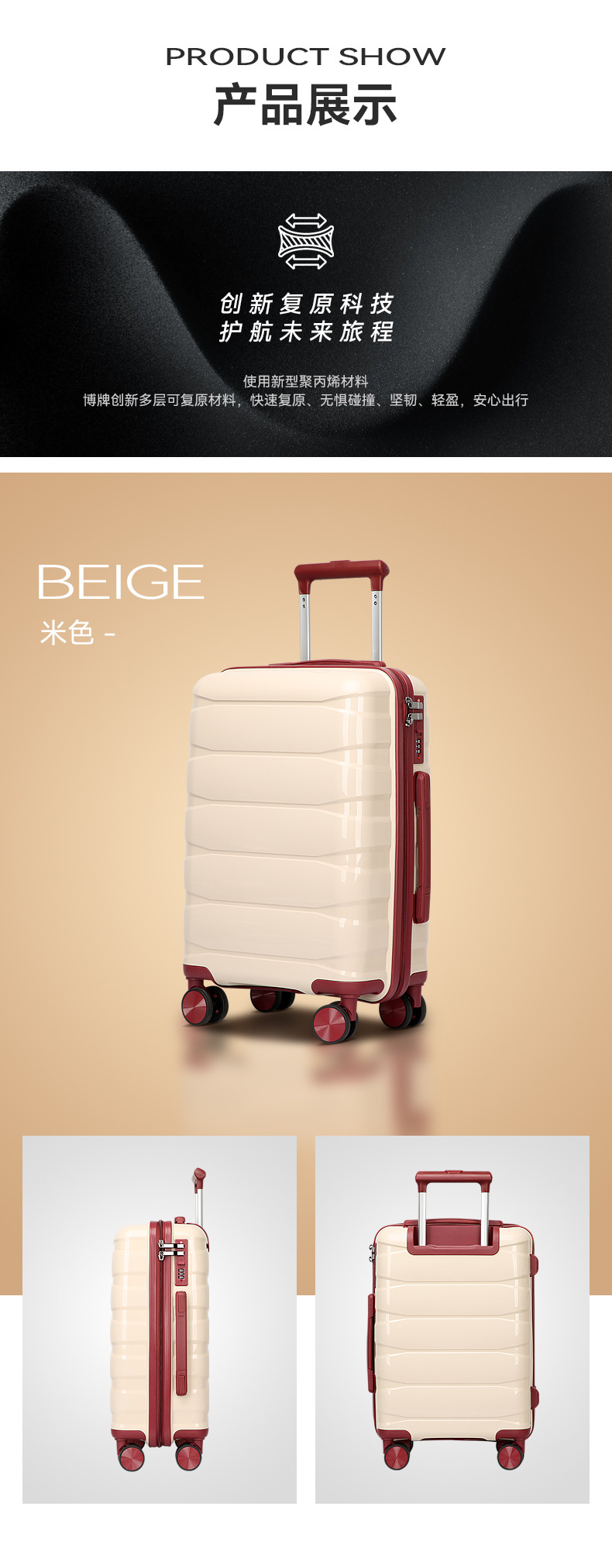 여행 지퍼 암호 상자 경량 대용량 내마모성 PP 트롤리 케이스 유니버설 휠 24 인치 여성 탑승 상자 남성 Bo 브랜드