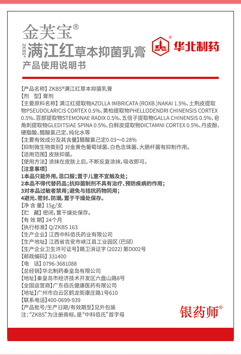 피부에 민감한 붉은 가려움증과 불편한 가려움증을 진정시키는 외부 사용을위한 북부 중국 제약 만장 붉은 약초 박테리아 크림