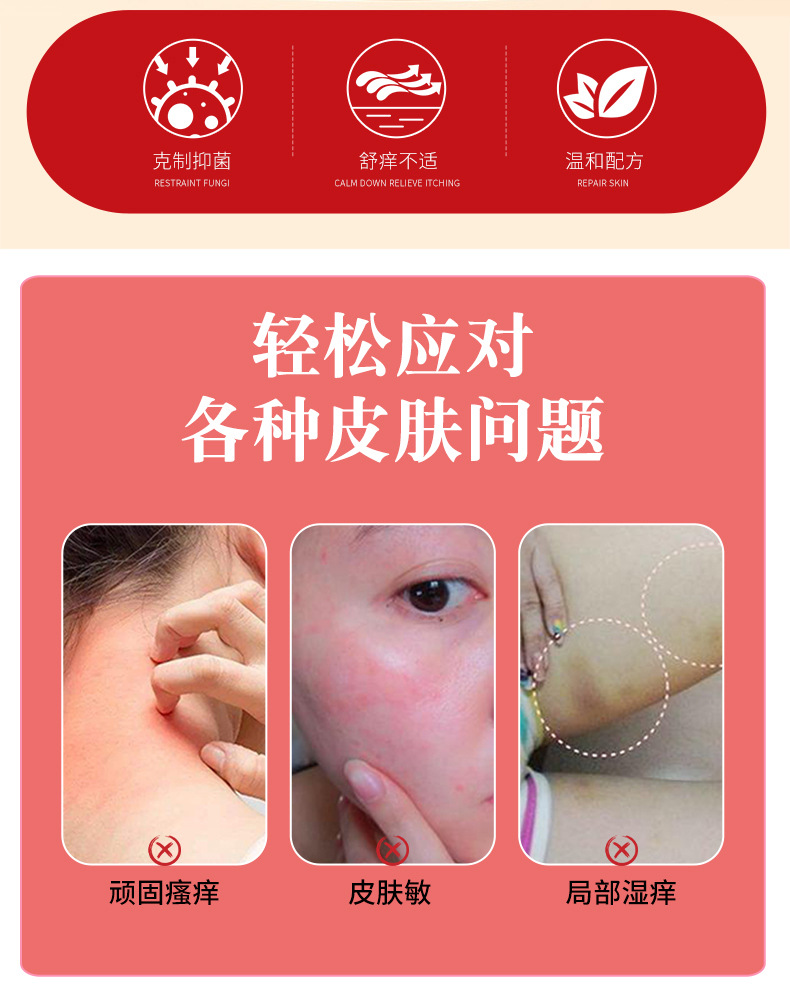 피부에 민감한 붉은 가려움증과 불편한 가려움증을 진정시키는 외부 사용을위한 북부 중국 제약 만장 붉은 약초 박테리아 크림스토어 가기