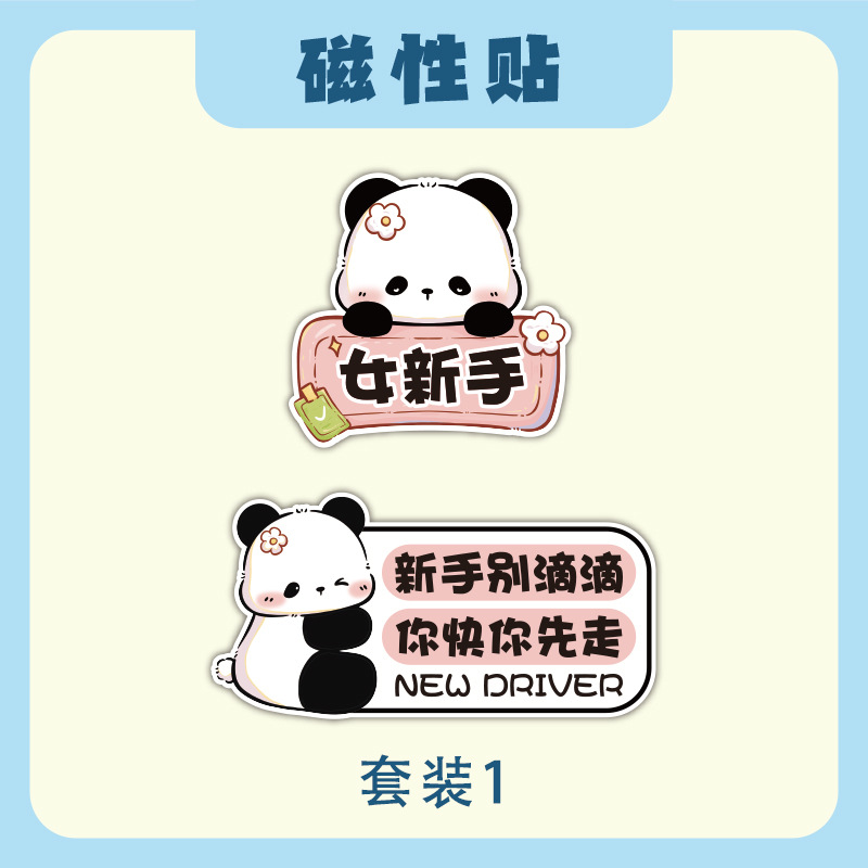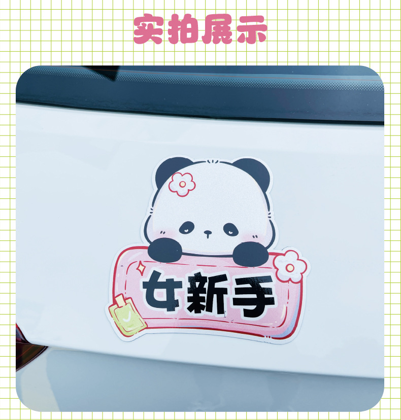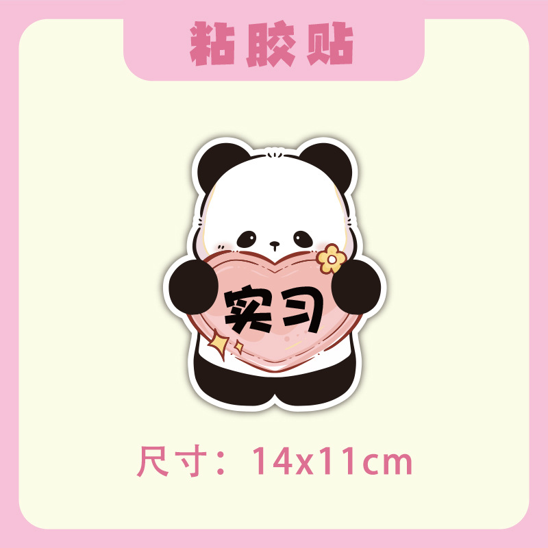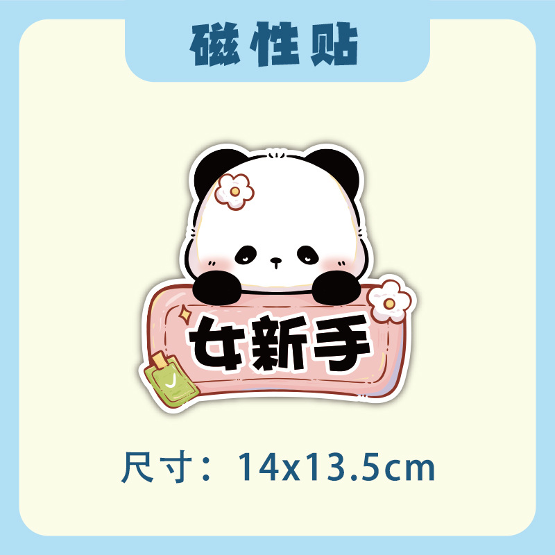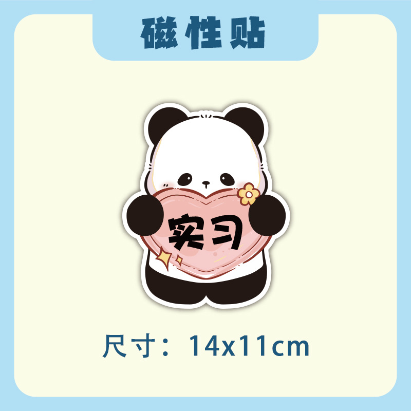 초보자를위한 인턴십 자동차 스티커 도로에서 운전하는 여성 운전자 자석 자동차 스티커 팬더 장식 창조적 인 재미있는 만화 스티커