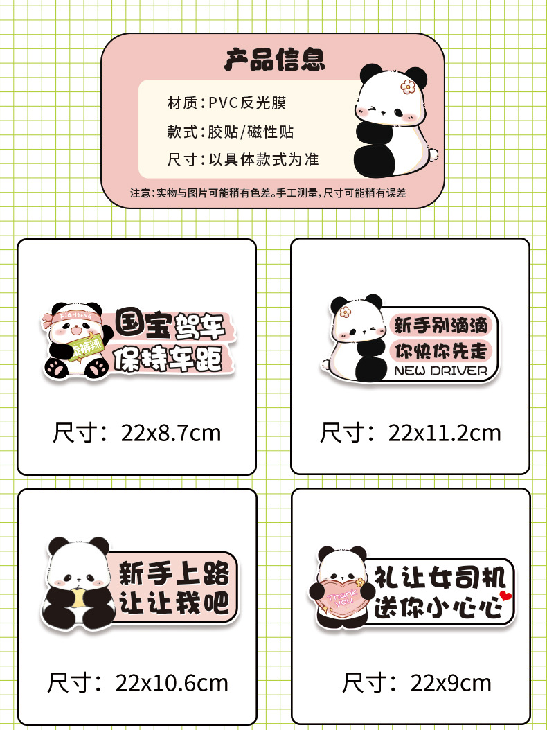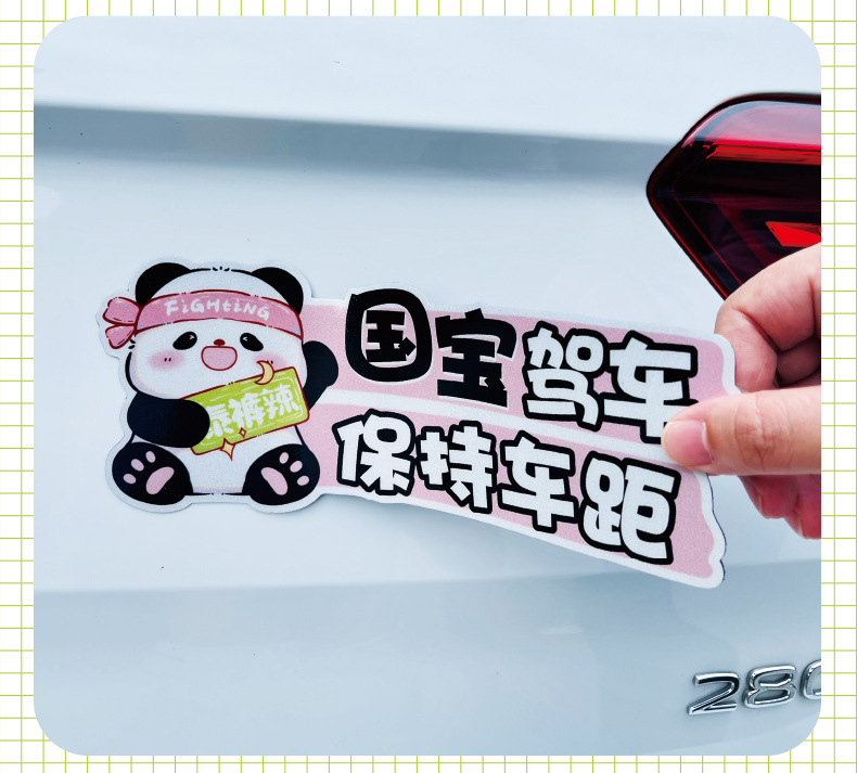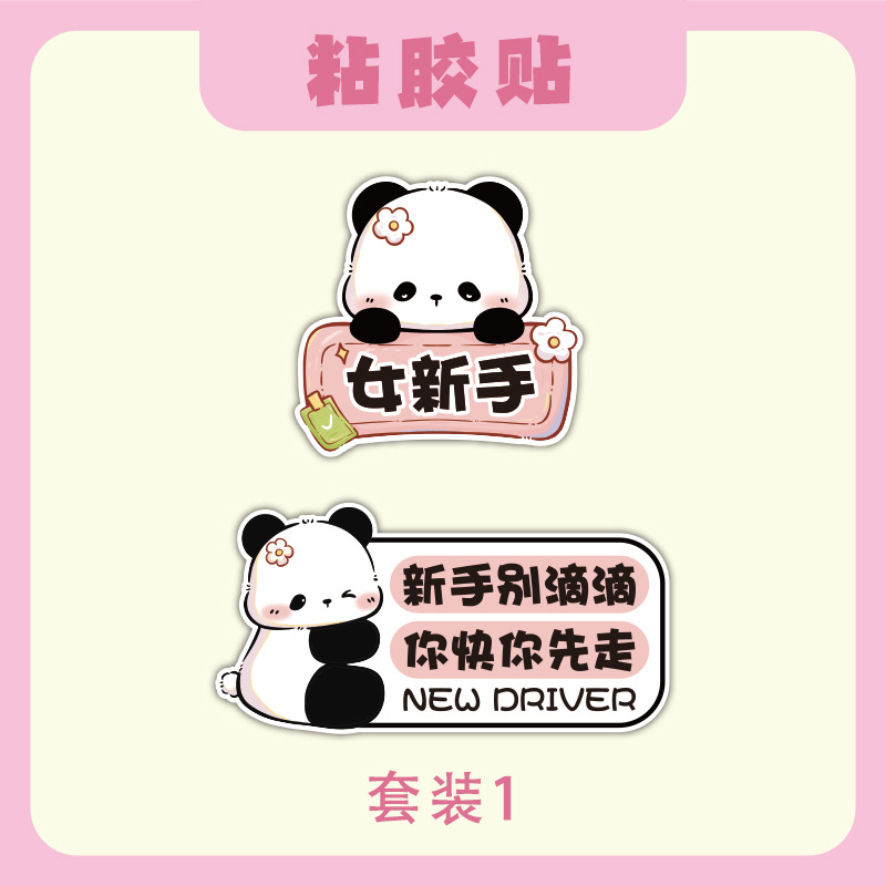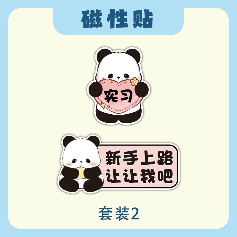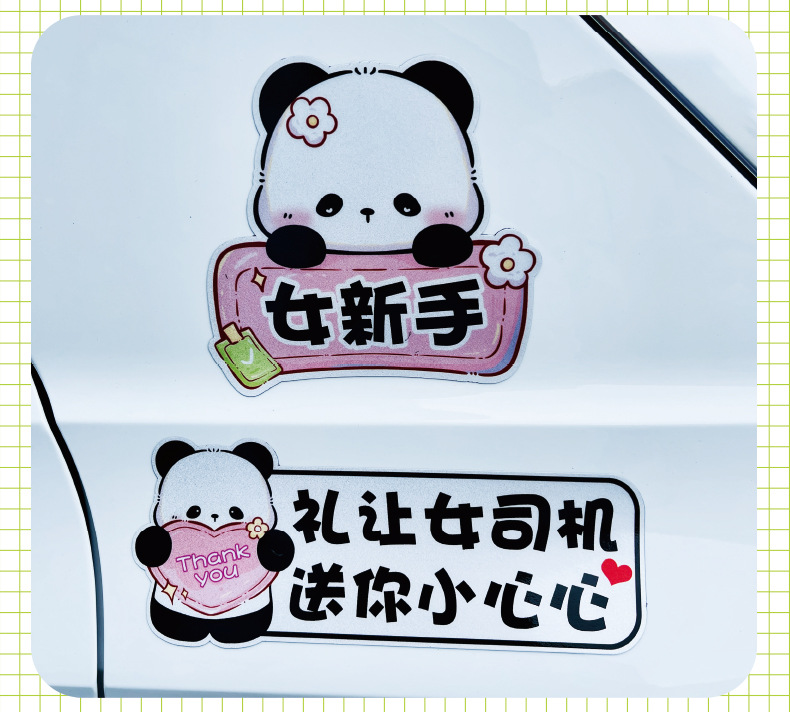 초보자를위한 인턴십 자동차 스티커 도로에서 운전하는 여성 운전자 자석 자동차 스티커 팬더 장식 창조적 인 재미있는 만화 스티커