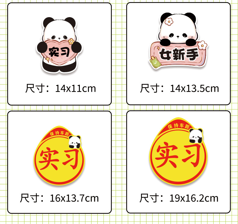 초보자를위한 인턴십 자동차 스티커 도로에서 운전하는 여성 운전자 자석 자동차 스티커 팬더 장식 창조적 인 재미있는 만화 스티커스토어 가기