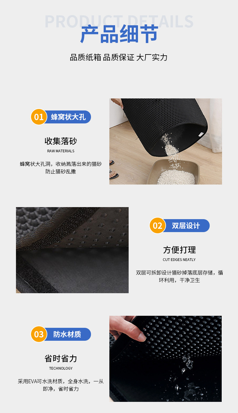 EVA 이중층 필터 고양이 모래 매트, 애완 동물 모래 제어 및 물 튀김 방지 벌집 가정용 고양이 모래 매트, 휴대 방지 및 세탁 가능스토어 가기