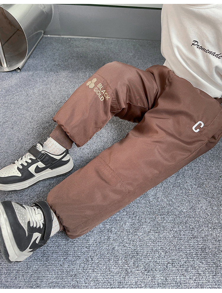 어린이용 깃털 벨벳 바지 남아 여아 두꺼운 아기 중대형 어린이 겨울용 외출복 한국 스타일 작업복 바지