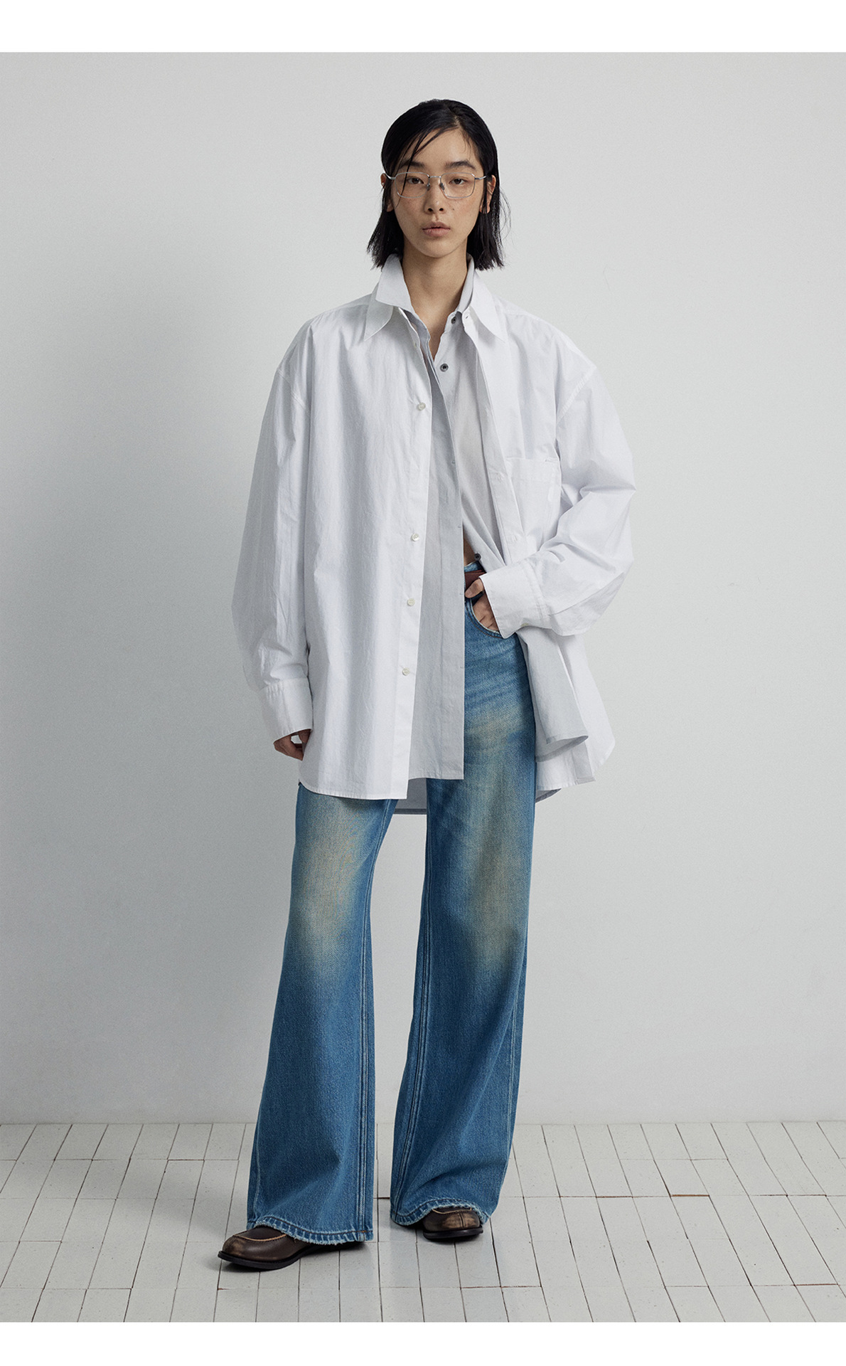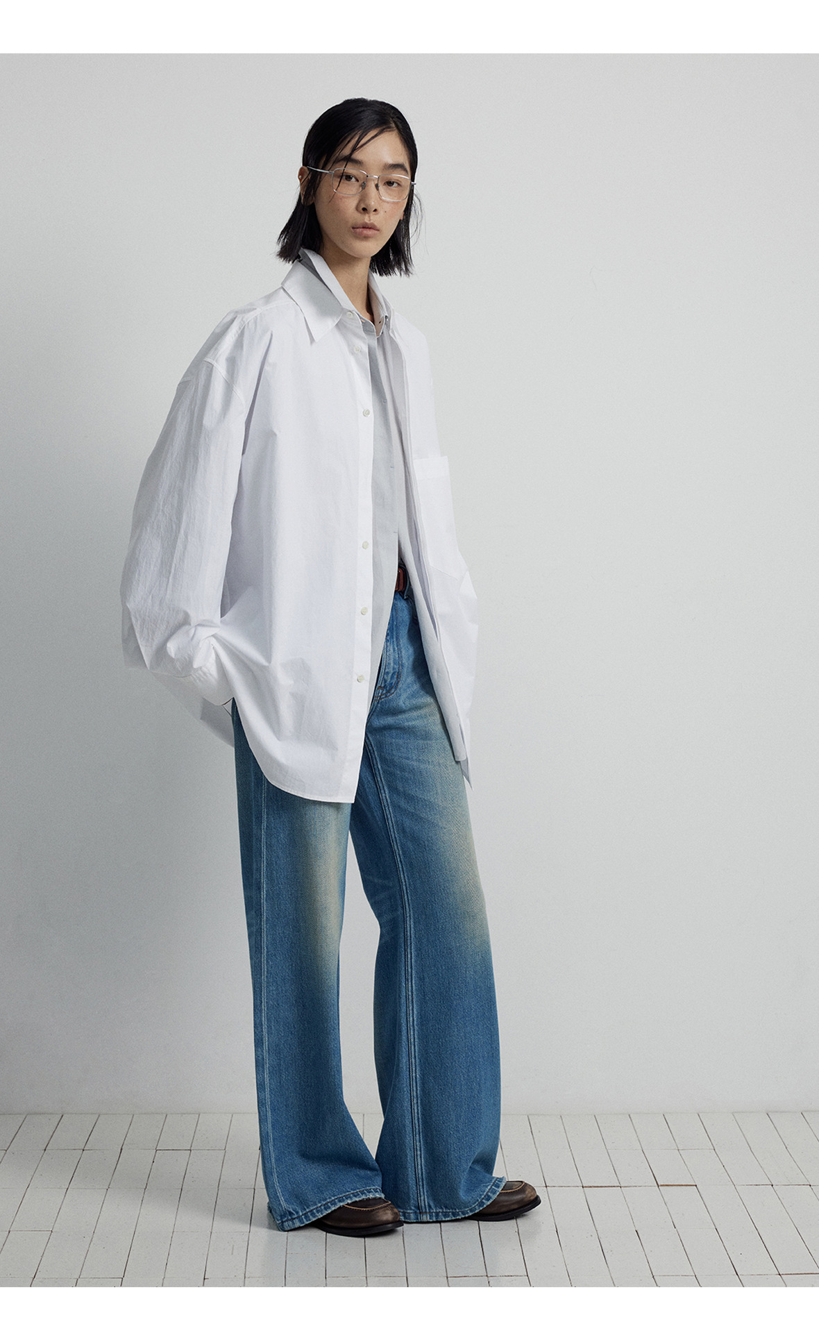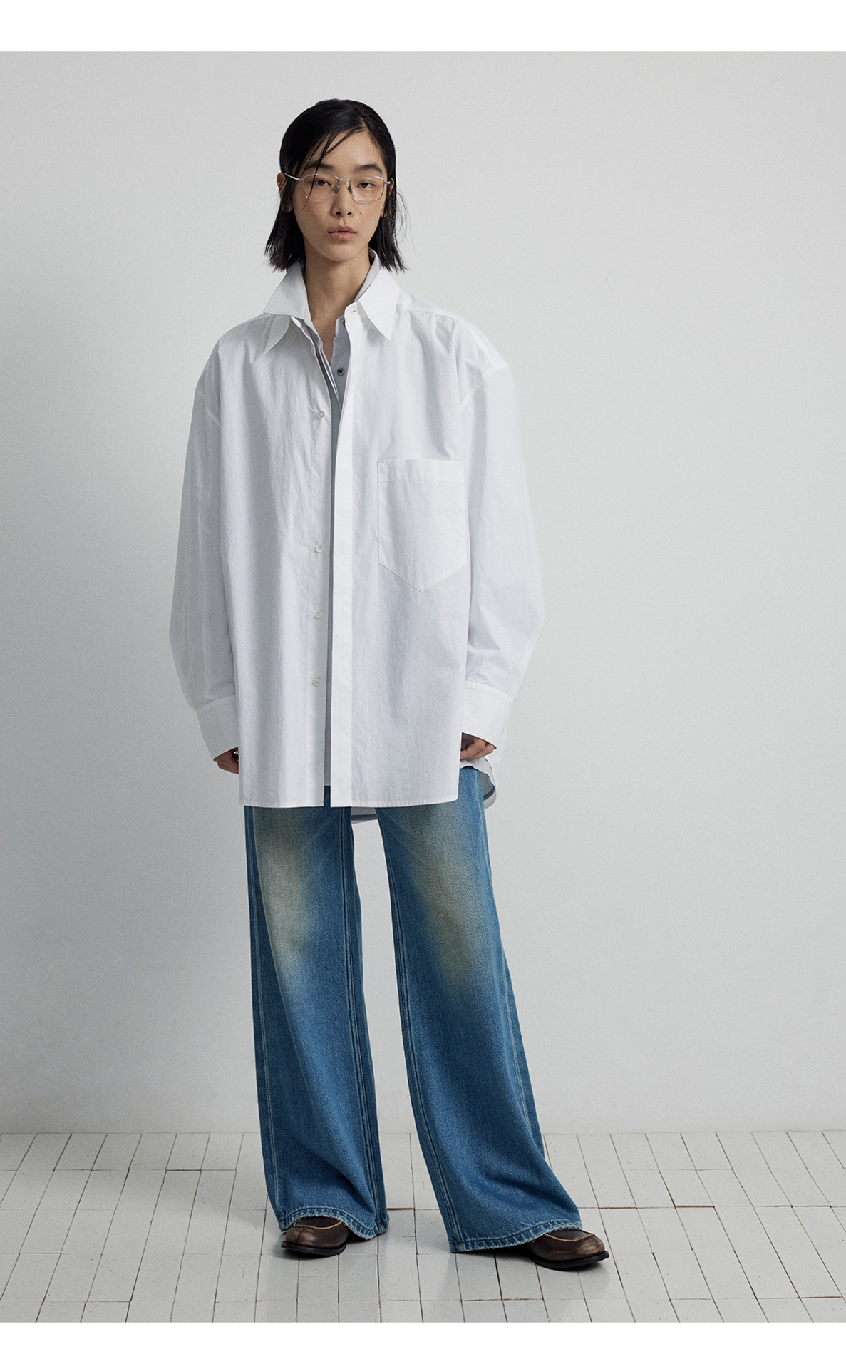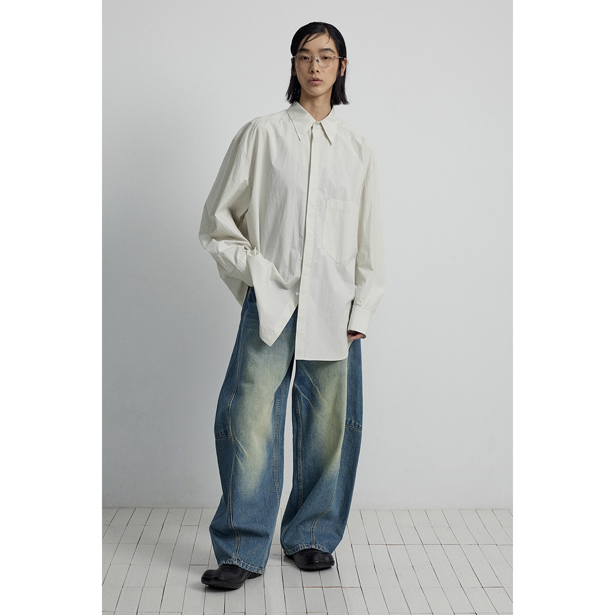 [시시] 신상품 순면 루즈핏 싱글버튼 카디건 라펠 드롭숄더 롱 슬리브 셔츠 여성용 V7025
