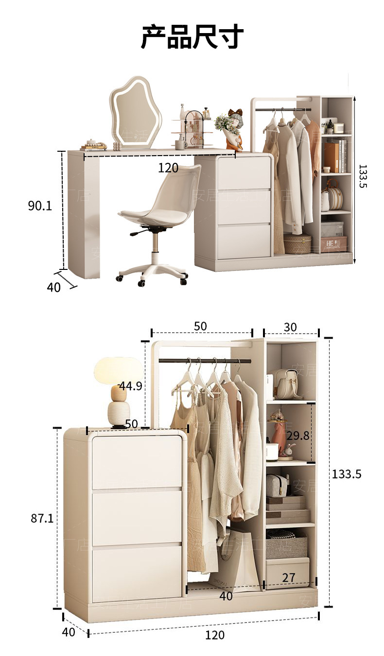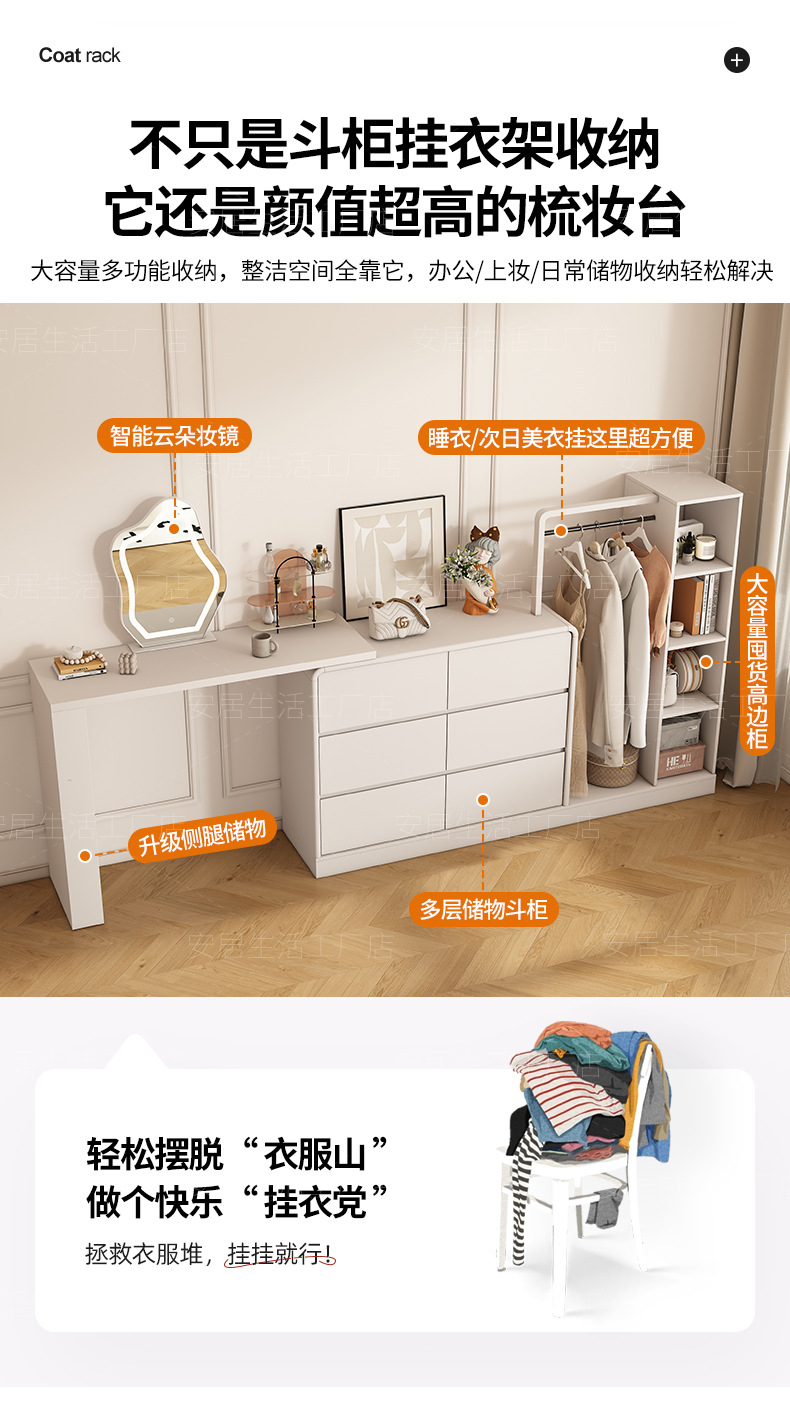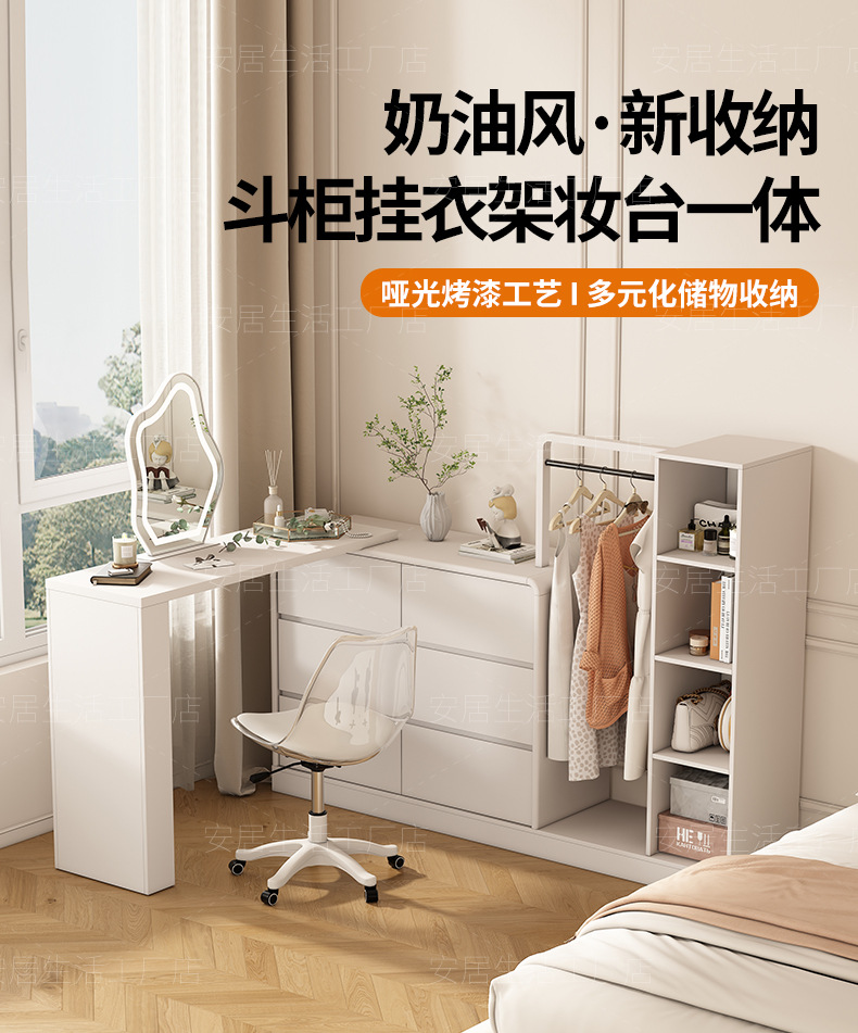크림 스타일 서랍 캐비닛 침실 보관 캐비닛 침대 끝 드레싱 테이블 드레싱 거울 통합 옷 옷걸이 보관 캐비닛 서랍장스토어 가기