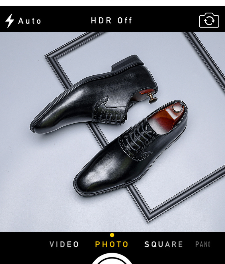 가죽 신발 남자의 2024 여름 새로운 사업 캐주얼 올 매치 통근 세트 원피스 새겨진 영국 브록 남성 신발스토어 가기
